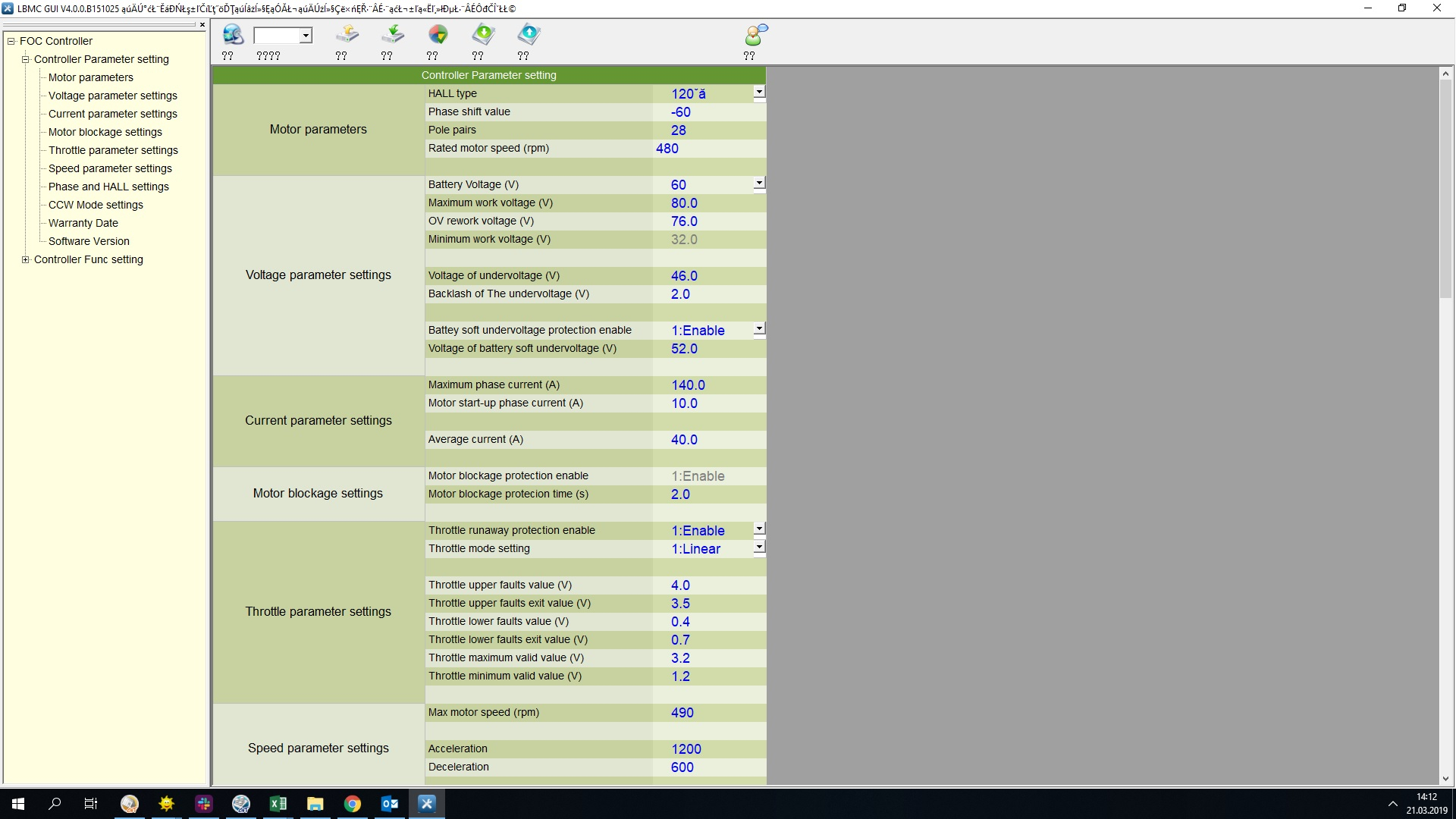 ich bin mit den Votol-Einstellungen ja auch der Verzweiflung nahe gekommen, habe das Gerät aber doch zum Laufen bekommen.