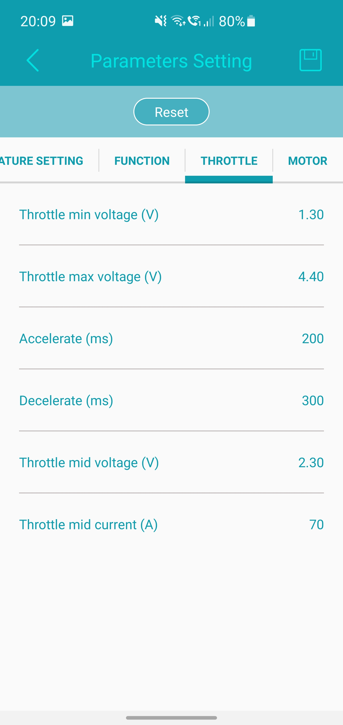es gibt zwei Temperaturüberwachungen, die des Controllers, die kann man nicht deaktivieren, und die des Motors, die muss man aktivieren, wenn vorhanden (6. Pin am Hall-Anschluss geht zum PTC im motor), das geht nur mit einer speziellen version der Software oder mit meinem Arduino-Sketch.
