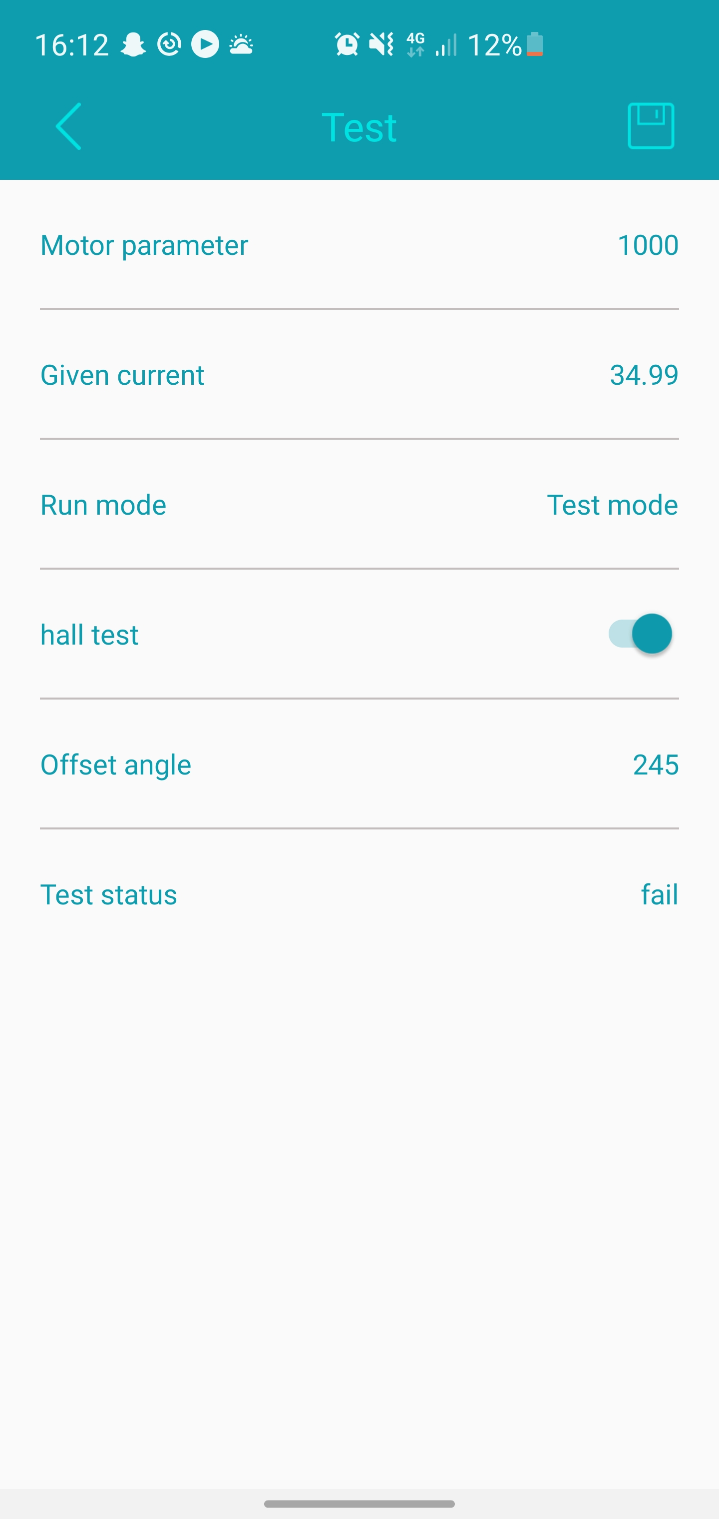 das Messgerät zeigt momentan so an, als würde der Controller die Motordrehung beginnen wollen, aber (mit Gas-Betätigung) nicht zur Bestromung des nächsten Phasenkabels wechseln. Kann aber auch am TEST-Modus "Hall-Test" des Controllers liegen, der nicht abgeschlossen wurde.