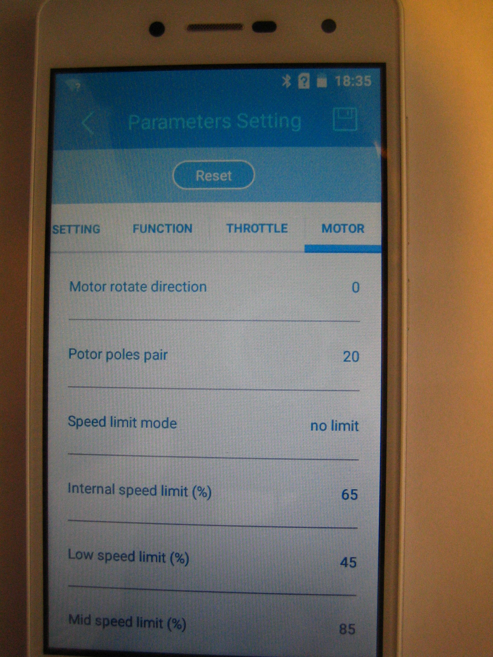 habe jetzt gerade den Sabvoton SMVC 72150 in meinen Futura Classico eingebaut, soweit zufrieden. Während des Einbaus hatte ich ein Problem mit einem Hall-Kabel, dass sich gelöst hatte, ich das aber nicht gesehen habe. Darauf hin ging der Sabvoton auf Hall-Fault 13. Ich habe dann einen Hall-Test versucht, natürlich fehlerfhaft. Dann ein Reset auf Wekseinstellungen - was zur Folge hatte, dass er alle meine Paramter und auch den Hallwinkel vergessen hat und plötzlich auf 245 Grad stand.