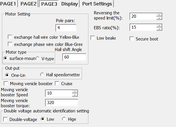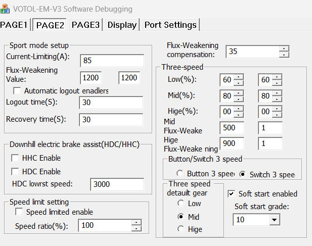 Die Hill Down Controll verhindert zu hohe Drehzahlen bergab und kann auch bei den Tests zu hohe Drehzahlen verhindern. Aber der errechnete Motor-Wert hängt von der eingestellten Polpaar-Anzahl ab.