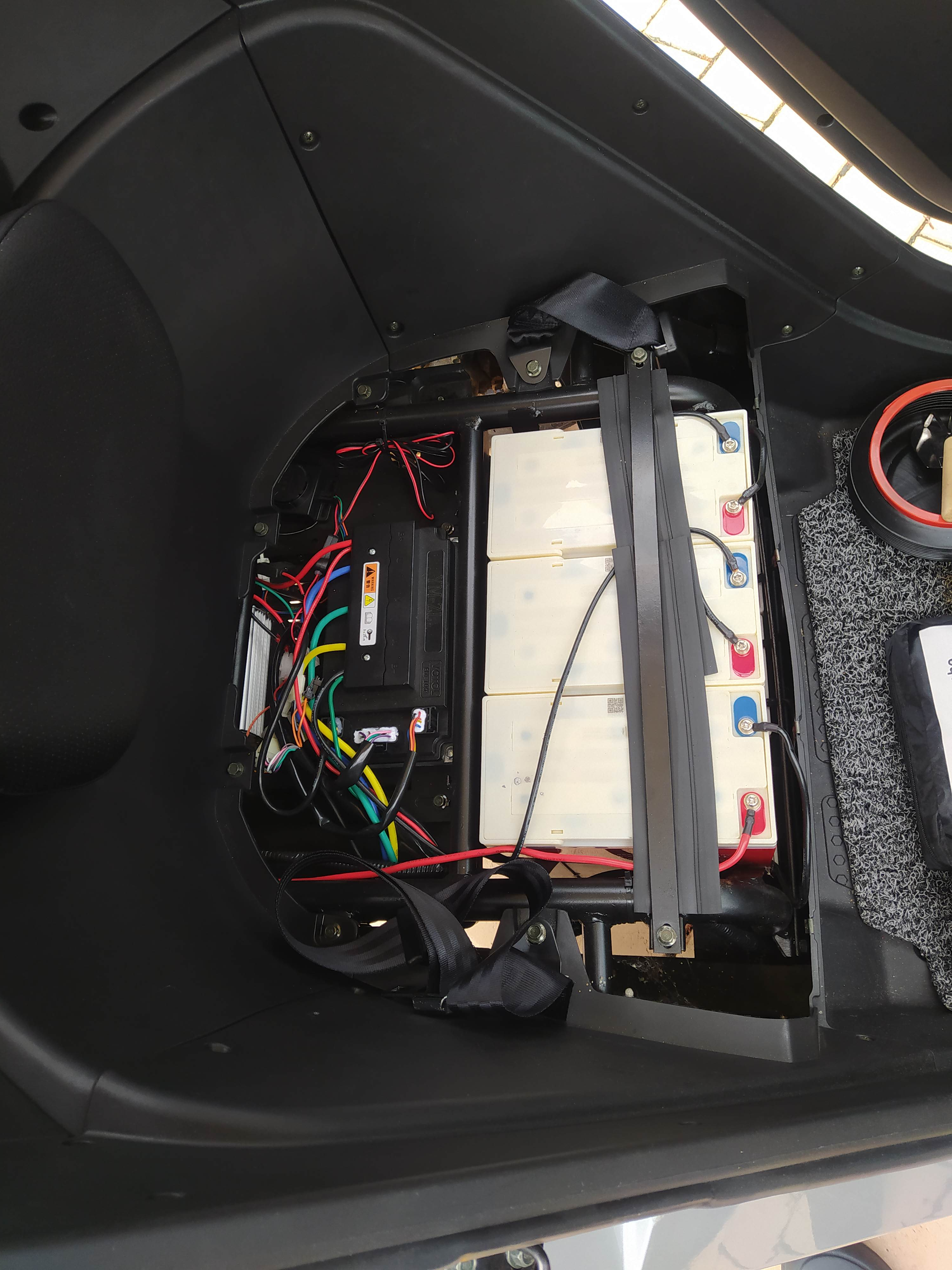 Es geht nicht um Leistungssteigerung (z.B. durch Um-Programmierung des Controllers), sondern um möglichst einfache, zukunftssichere und wirtschaftliche Akku-Aufrüstung - IM IDEALFALL OHNE JEGLICHE ÄNDERUNGEN AM FAHRZEUG nach dem Motto "alte Blei-Gel-Akkus raus, neuen (LiFePo4?)-Akku rein"... wobei der neue Akku aus China (siehe Link) definitiv technisch und von den Dimensionen her passen sollte, da eventueller Rückversand extrem schwierig würde (und Kauf in Deutschland ungeschickt wäre, da Preise im deutlich vierstelligen Euro-Bereich). Sorry für meinen naiven Optimismus und die absolut amateurhaften Formulierungen meinerseits: Kenne mich wie erwähnt überhaupt nicht aus und bin daher umso dankbarer für Feedback von Ihnen (da Sie offensichtlich totaler Experte sind) oder anderen Mitlesern. Organisatorischer Hinweis zu den beigefügten Fotos: Alle geschossen von geöffneter Tür rechts (in Fahrtrichtung).
