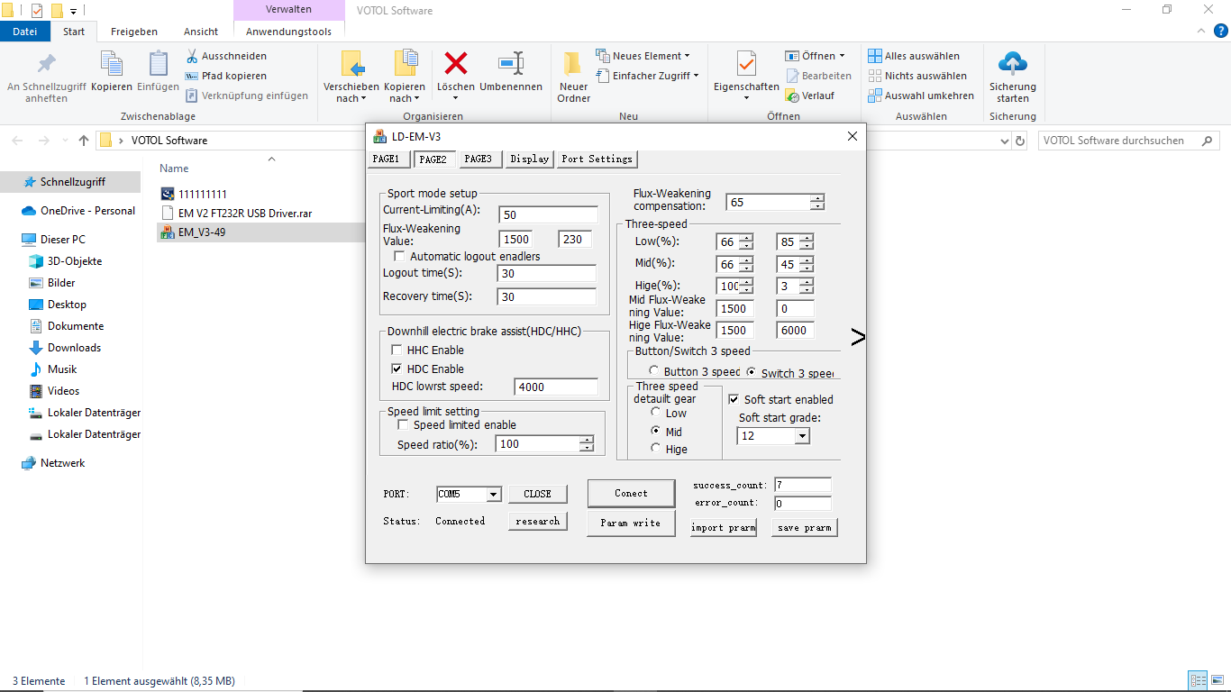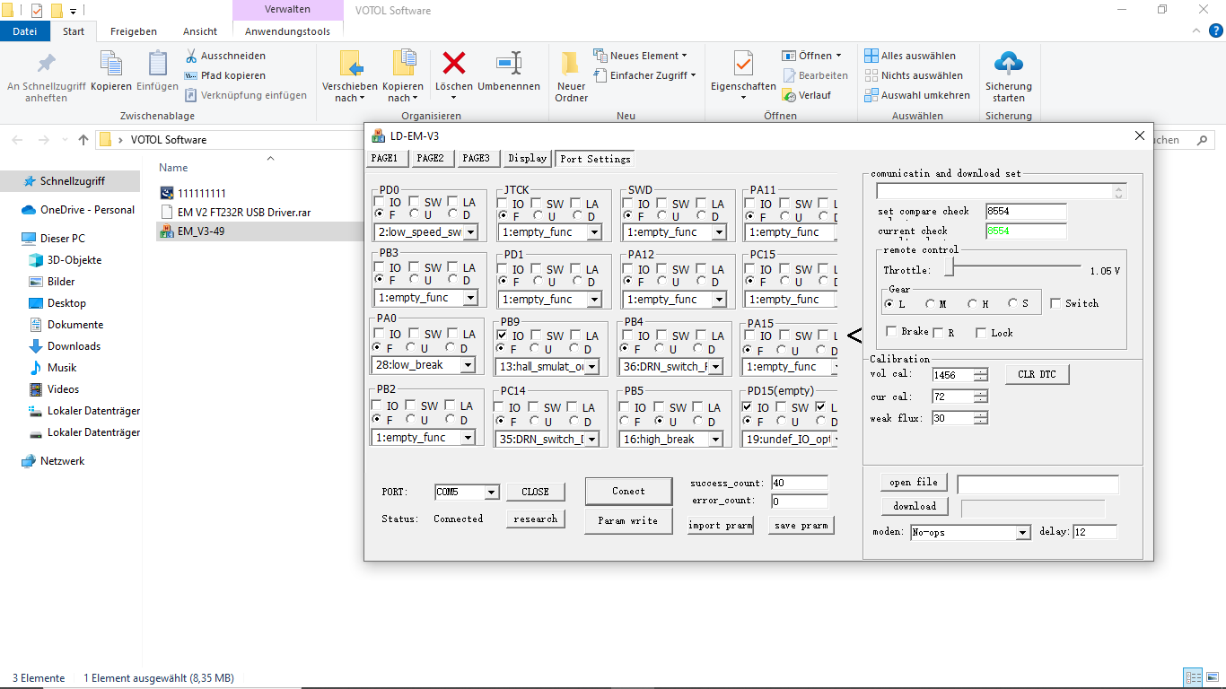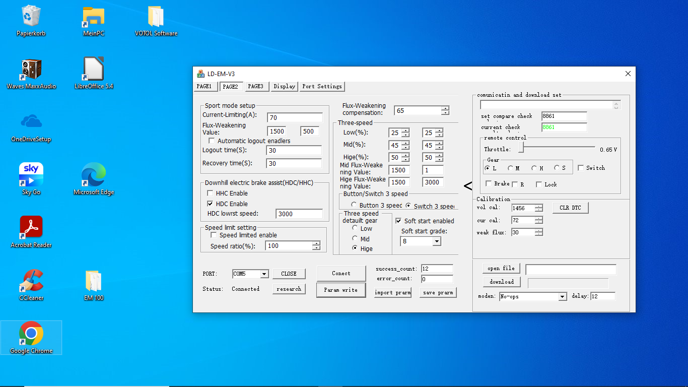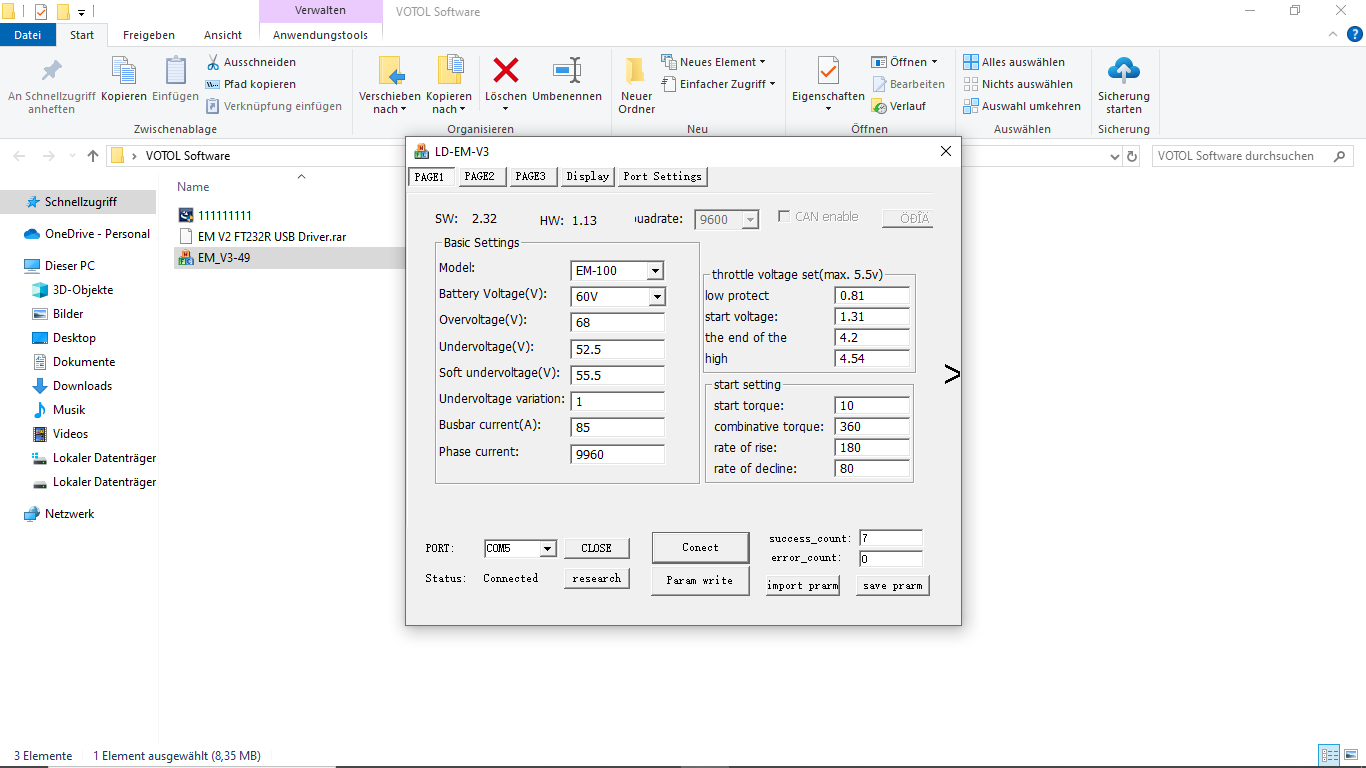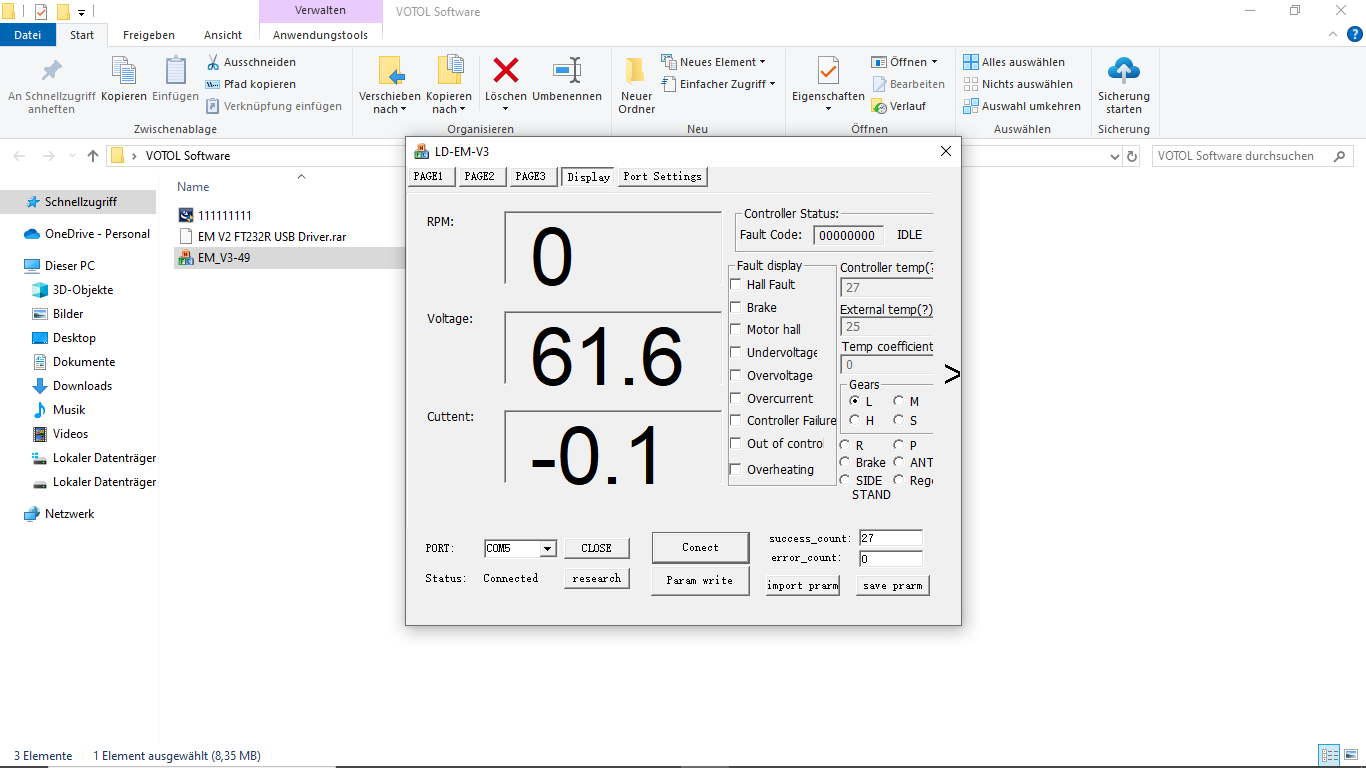 Der Motor läuft mit den jetzigen Einstellungen wunderbar, die Geschwindigkeit die angezeigt wird stimmt auch.