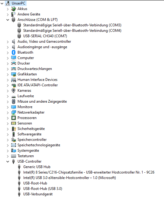 5. USB-Controller unter Windows schienen i.O. (also kein Konflikt) und der Com-Treiber ist auch korrekt - siehe Anhang.