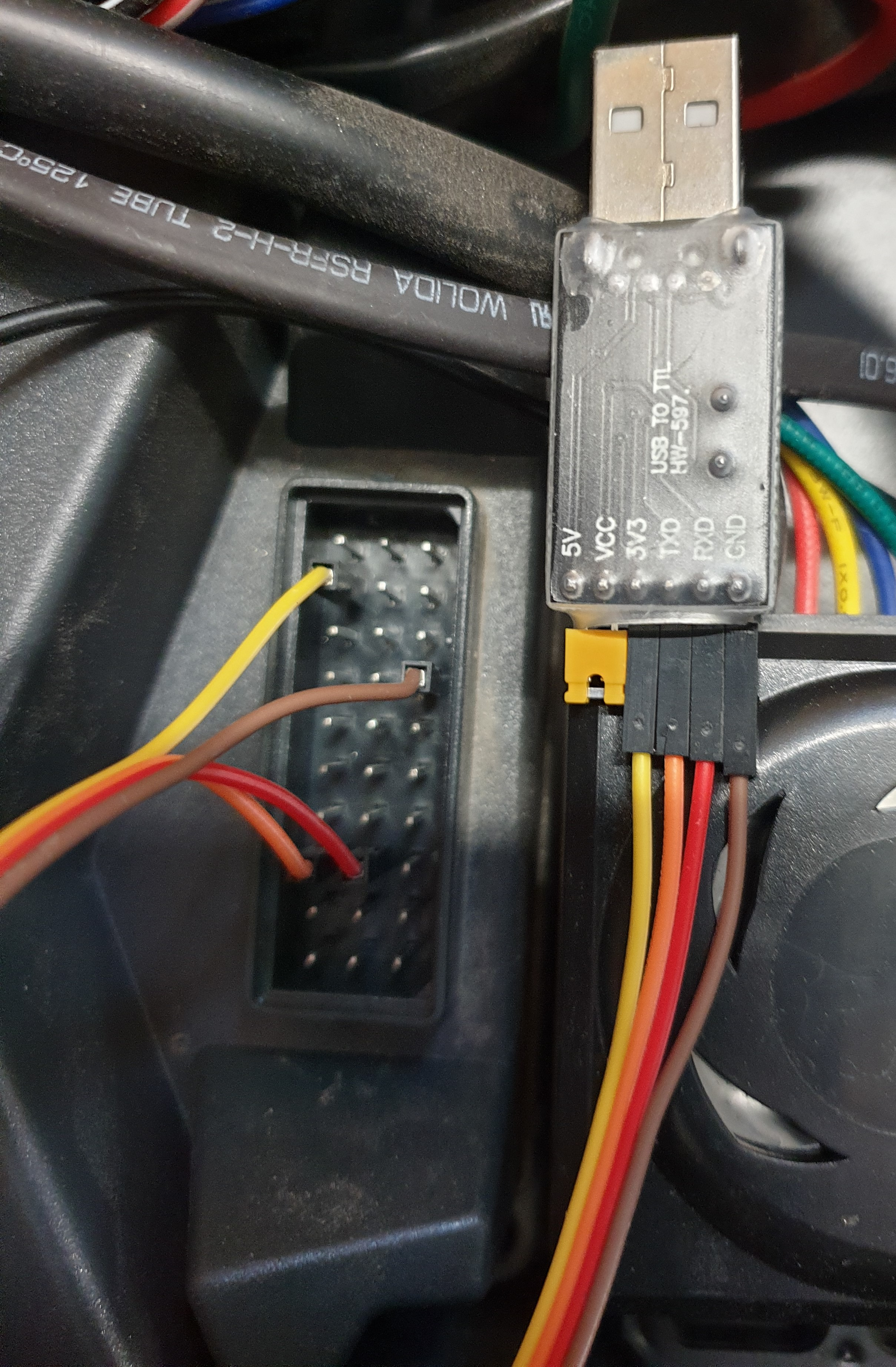 I bought the USB adapter to communicate with the controller: USB TTL converter CH340G CP2102 PL2303 UART FTDI Arduino 5V + 3.3V