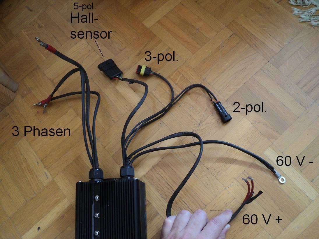 ist angeschlossen. Das sind die Hallsensoranschlüsse mit backup ( der freie Strecke). 3 Kabel die vom Motor kommen,das