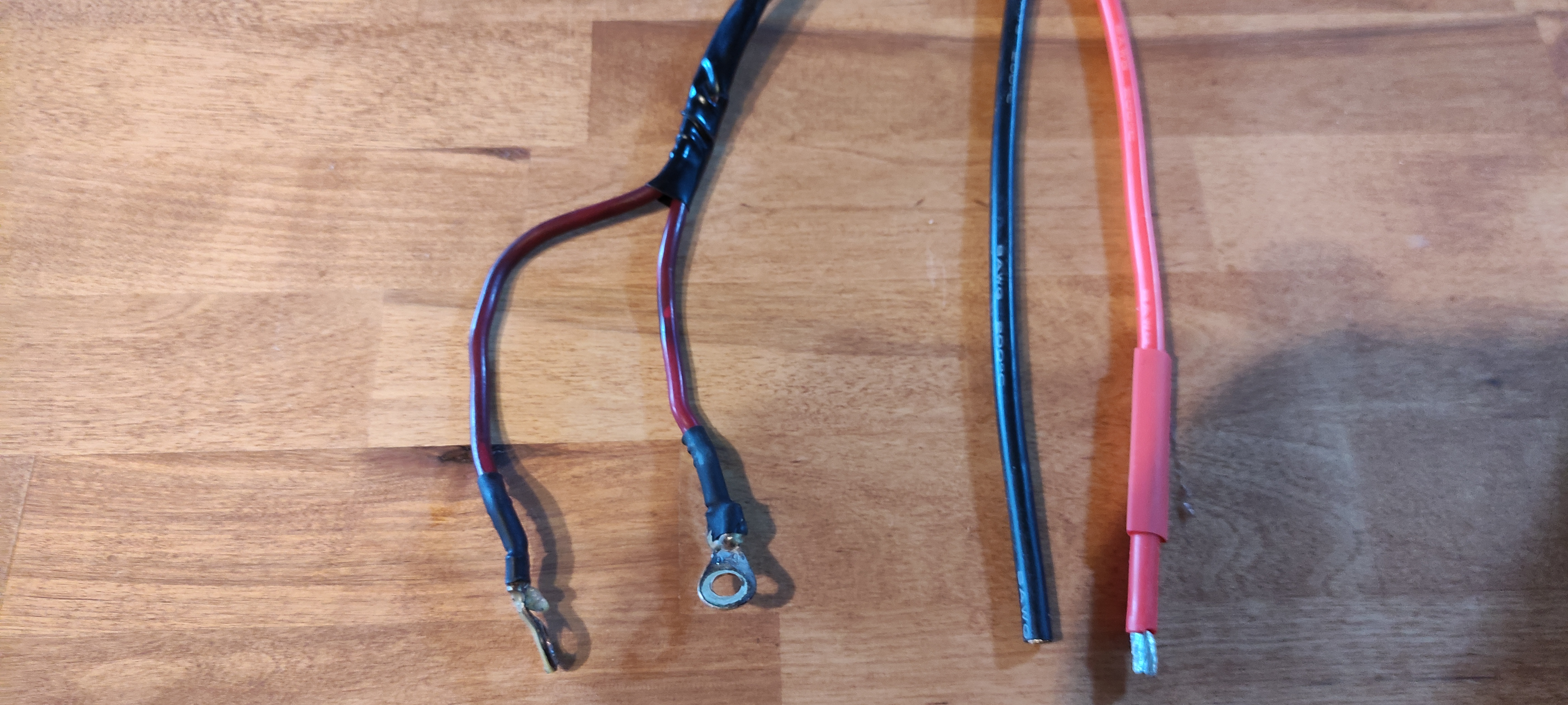 - Leitungen der Spannungsversorgung ab Akku zum Controller sind 4mm². Die Plusleitungen wurden so heiß, dass das damalige Rot eher Schwarz ist an der Isolierung- Minus genau so, aber da sieht man die Verfärbung nicht so- nur die Versprödung. Der Spezialist und Zulieferer von Kabelbäumen für BMW und andere Marken ist ein guter alter Freund von mir- also gleich mal paar Meter AWG8 Silikonleitungen beim Besuch mitgenommen.