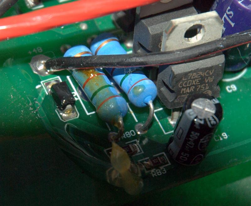 welcher recht unglücklich verlegt ist (touchiert ein Mosfet leicht und kontaktiert einen Widerstand) hier sieht es ein wenig
