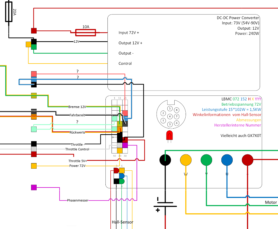 Beide sehen ja ähnlich aus. Zu meinem Controller habe ich leider nichts gefunden. Es ist schon mal beruhigend, dass er die 3kW bringt. Weiterhin habe ich versucht herauszufinden, welche Kabel für was zuständig sind. Ein paar Geheimnisse konnte ich so zwischenzeitlich lüften.