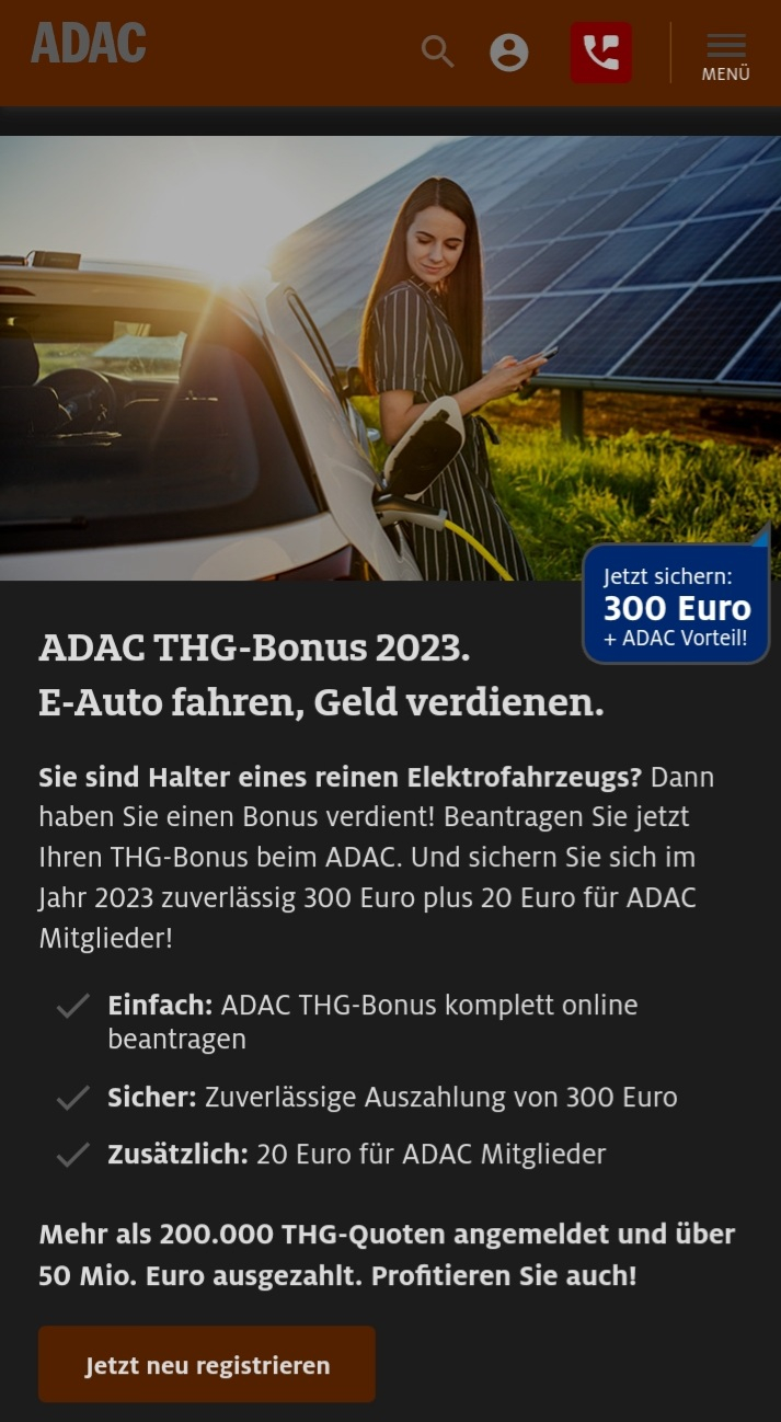 So, und nun zur Website des ADAC und den ADAC THG-Bonus 2023 von 300 +ggf. 20 Euro beantragen!