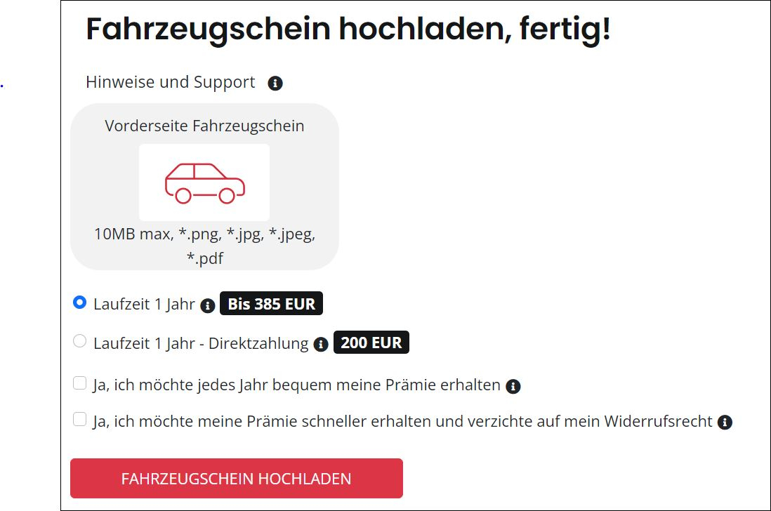 Achja. Falls es eine Rolle spielt... habe die Prämien bei Instadrive beantragt