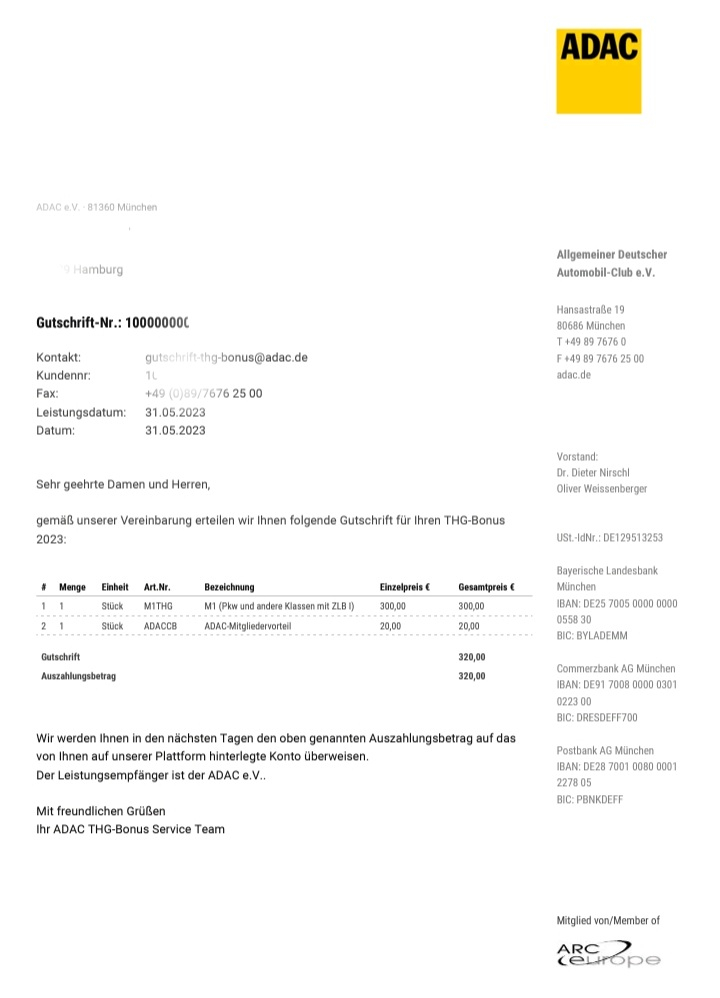 Da fehlt der Schrieb vom ADAC worin bestätigt wird das für 2023 , 320 EUR Prämie ausgezahlt wurde.