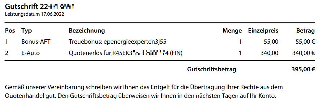 Ich habe jetzt auch meine Quote von emobia.de erhalten - mehr als erwartet ...redstromerbaron hat geschrieben: ↑Mi 30. Mär 2022, 15:31[...] ich bin gespannt, wann die Bestätigung + das Geld kommtredstromerbaron hat geschrieben: ↑Sa 12. Feb 2022, 13:54[...] habe ich heute meinen EK3 bei emobia.de registriert. [...] Ich lasse mich überraschen und werde hier berichten, wie das ausgeht.![]()