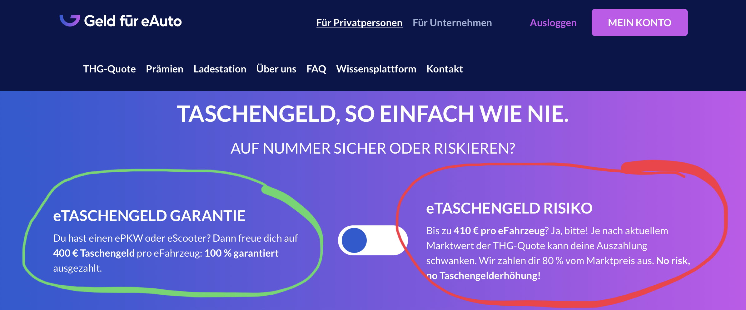 Ihr kennt die Homepage von https://geld-fuer-eauto.de mit den beiden Optionen 400€ garantiert oder bis zu 410€ auf Risiko?