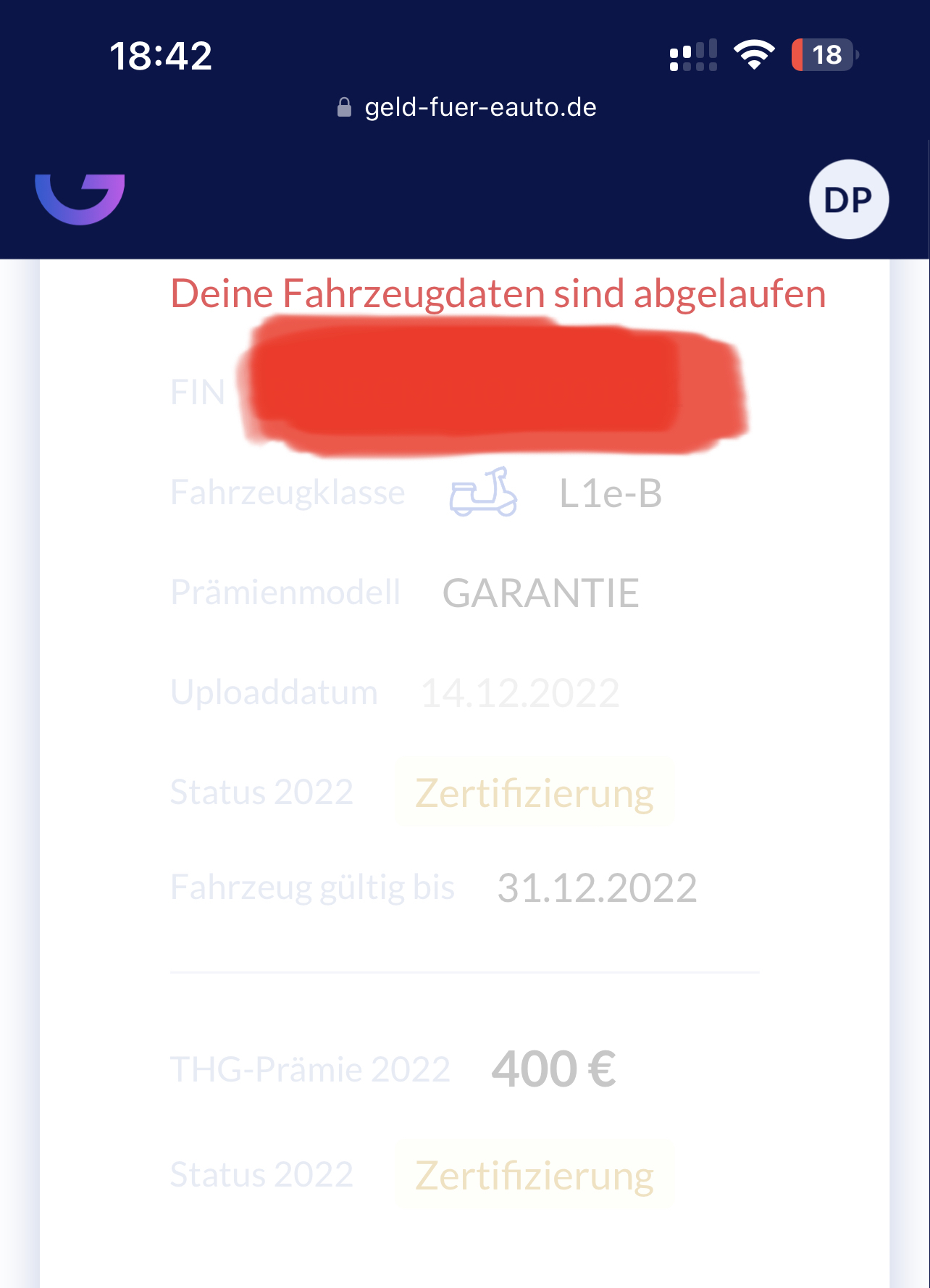 Geld-fuer-eAuto jat mich grade mit einer Email überrascht, das die Unterlagen für mein Fahrzeug beim UBA eingereicht wurden. Obwohl ich das Fahrzeug schon länger dort abgemeldet habe und auch im Onlineportal diese Abmeldung bestätigt ist.