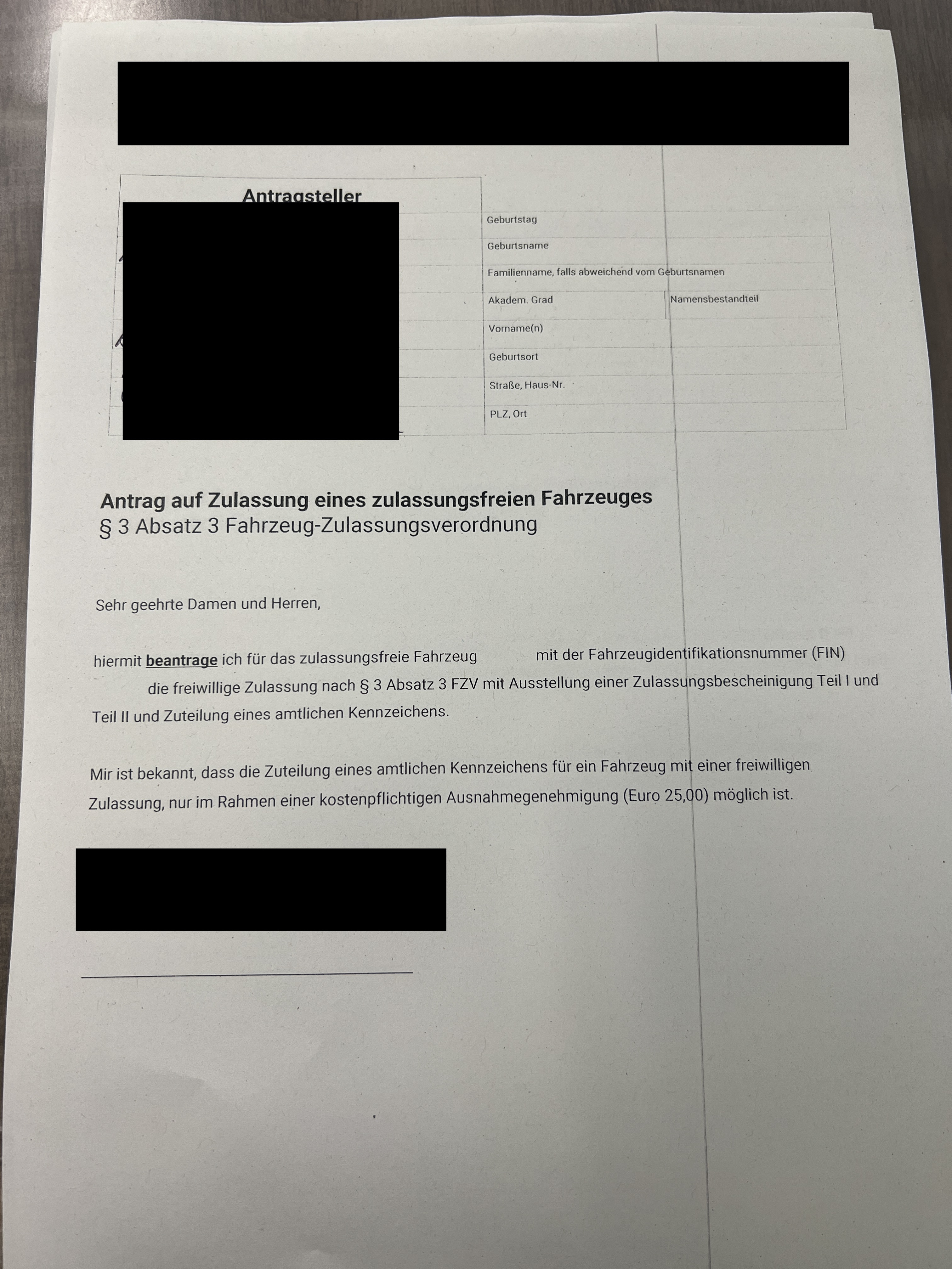 Formel muss dir die Zulassungsbehörde ein 280x200 Schild zuteilen.Alexthebest hat geschrieben: ↑Di 8. Nov 2022, 17:53Da musste ich auch einen Wisch unterschreiben, das eine zusätzliche Gebühr i.h.v. 25€ anfällt.