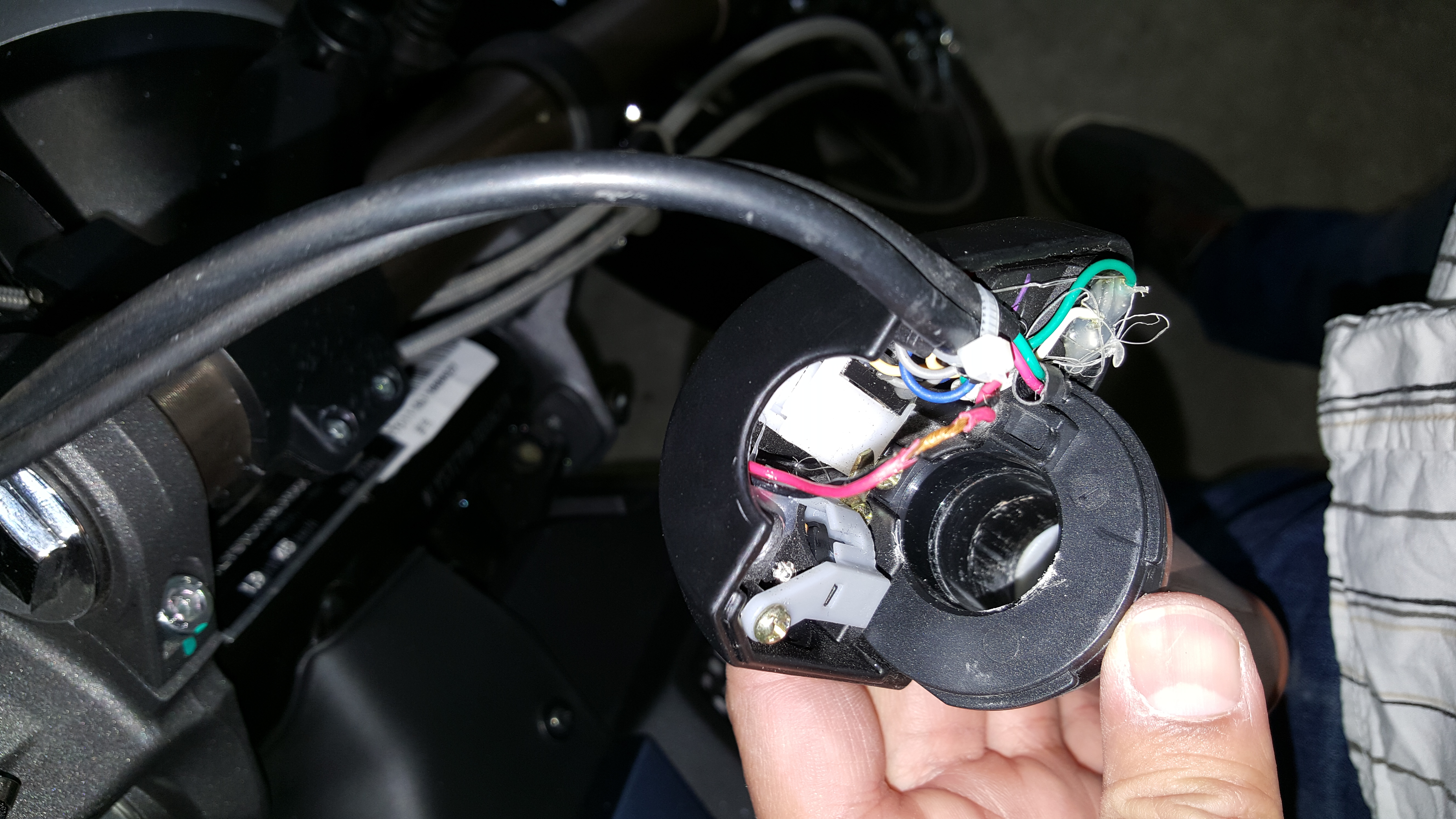 Das geht auch ein Tick einfacher wenn man maximal nur Stufe 2 verwenden will. Habe den Gasgriff mal aufgemacht um den Lichtschalter zu aktivieren.Datschi hat geschrieben: ↑So 16. Sep 2018, 19:39Da habe ich mir auch schon mal Gedanken gemacht. Am Gasgriff ist ein nicht verwendeter Lichtschalter. Wenn man die Drähte so umklemmt, das die Zuleitung vom Stufenschalter über den nicht verwendeten Schalter geht, kann man Theoretisch das so klemmen, das nur die Stufe 2 über eine Schalterstellung geschalten wird. Stufe 1-2-3 über die andere Schalterstellung. Aber ich habe mir die Mühe noch nicht gemacht, den Gasgriff zu öffnen... und wegen Garantiefall auch noch keine Gedanken gemacht.