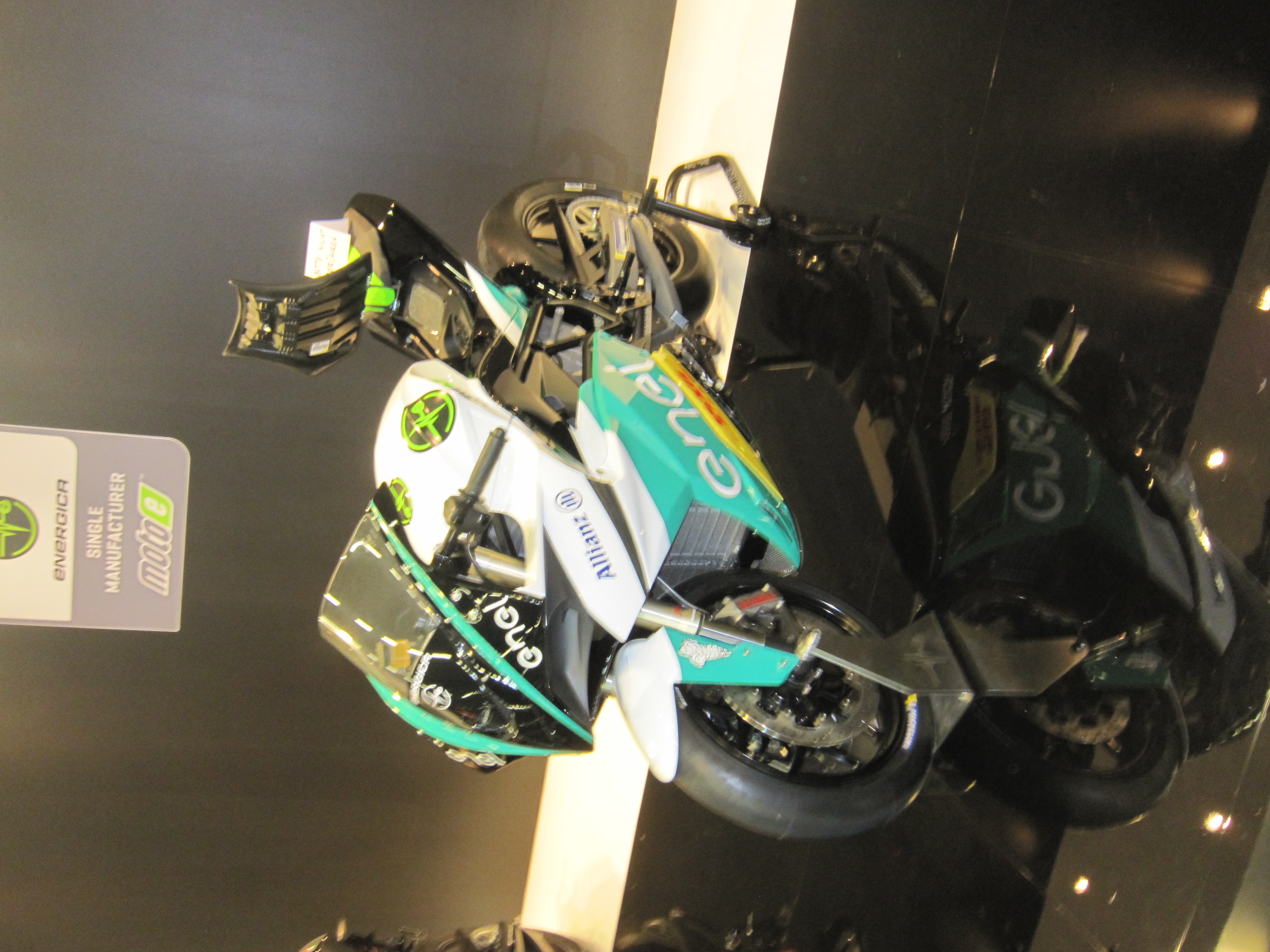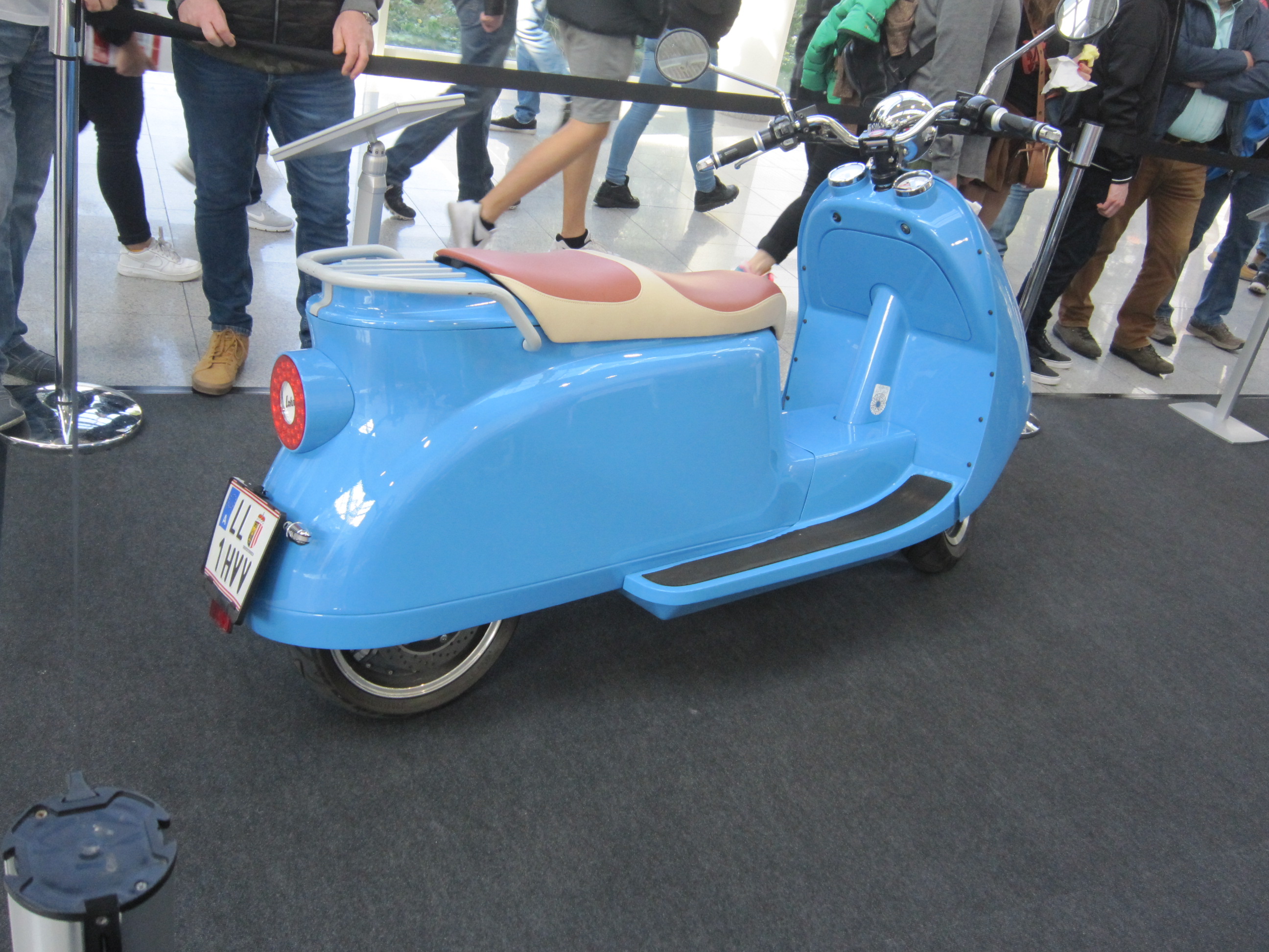 Der ECOOTER ist im Vertrieb. Direktimporteur ist ETROPOLIS eine Tochter der SiG Solar GmbH mit Sitz in Stuhr bei Bremen. Gezeigt wurde der Ecooter E1 und E2. Der früher vertriebene Retro folgt dem Schicksal der E-Max Serie, dh. er ist aus dem Programm. ETROPOLIS stützt sich nun bei den Rollern vornehmlich auf den Ecooter. Der E2 übernimmt die Leichtkraftrollersektion und wird über zwei herausnehmbare Akkus verfügen. Beide sollen während der Fahrt simultan genutzt werden können. Das auf der Messe gezeigte Vorserienmodell war noch nicht mit dem entsprechenden Verteilerkabel ausgestattet. Im inneren unter dem Fahrersitz waren beide Akkus zu sehen, die aber noch unterschiedliche Gehäuse hatten. Die technischen Daten der Akkus habe ich mir nicht gemerkt. Ich erinnere mich aber, dass der Manager von 40 AH je Akku sprach. Vermutlich ist der Kontroller auch noch nicht entsprechend konfiguriert.