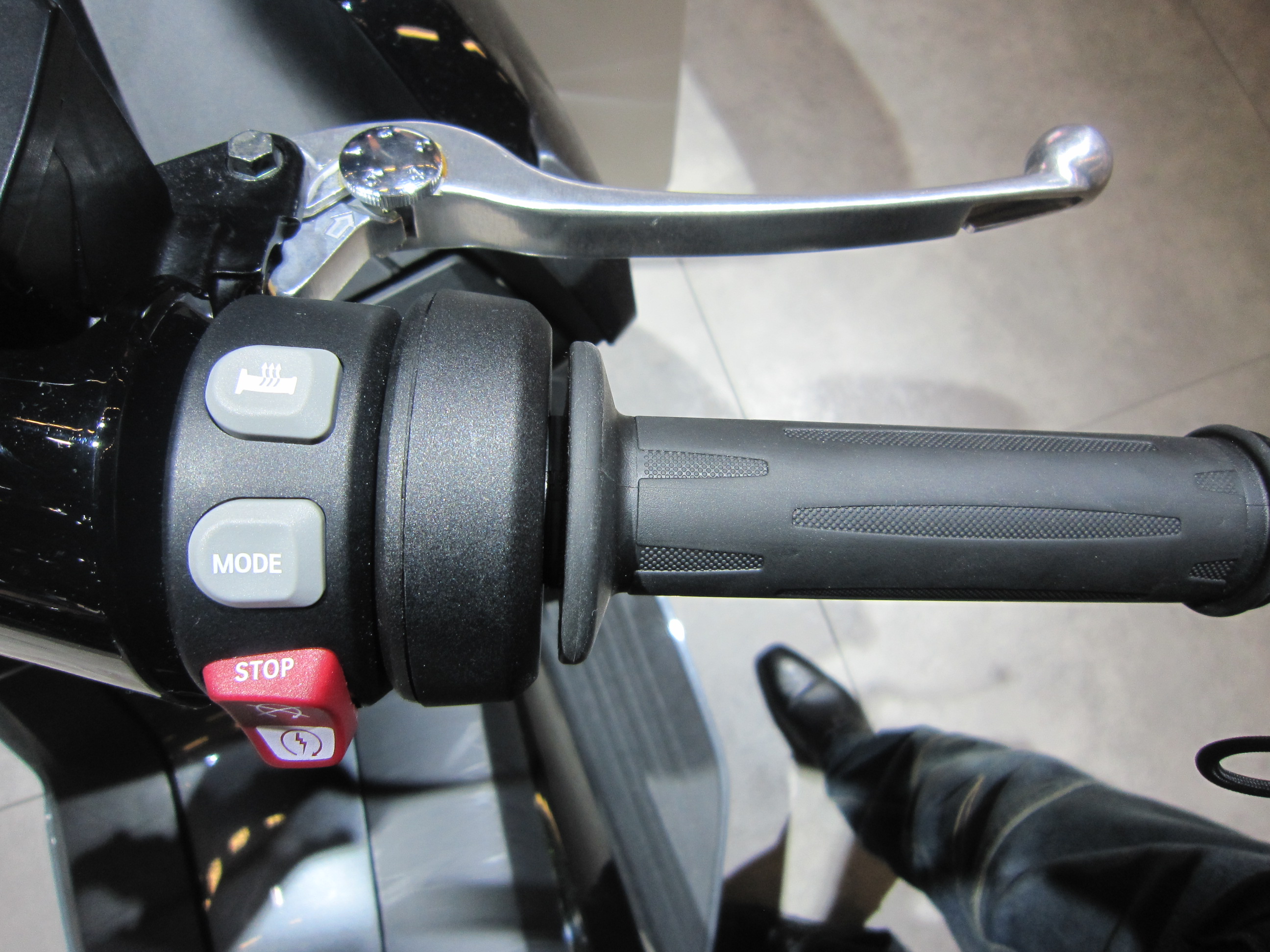 Wie man am rechten Handgriff sieht, ein Großelektroroller für Warmduscher, Handschuhverweigerer oder Winterfahrer (Heizgriffe serienmäßig)