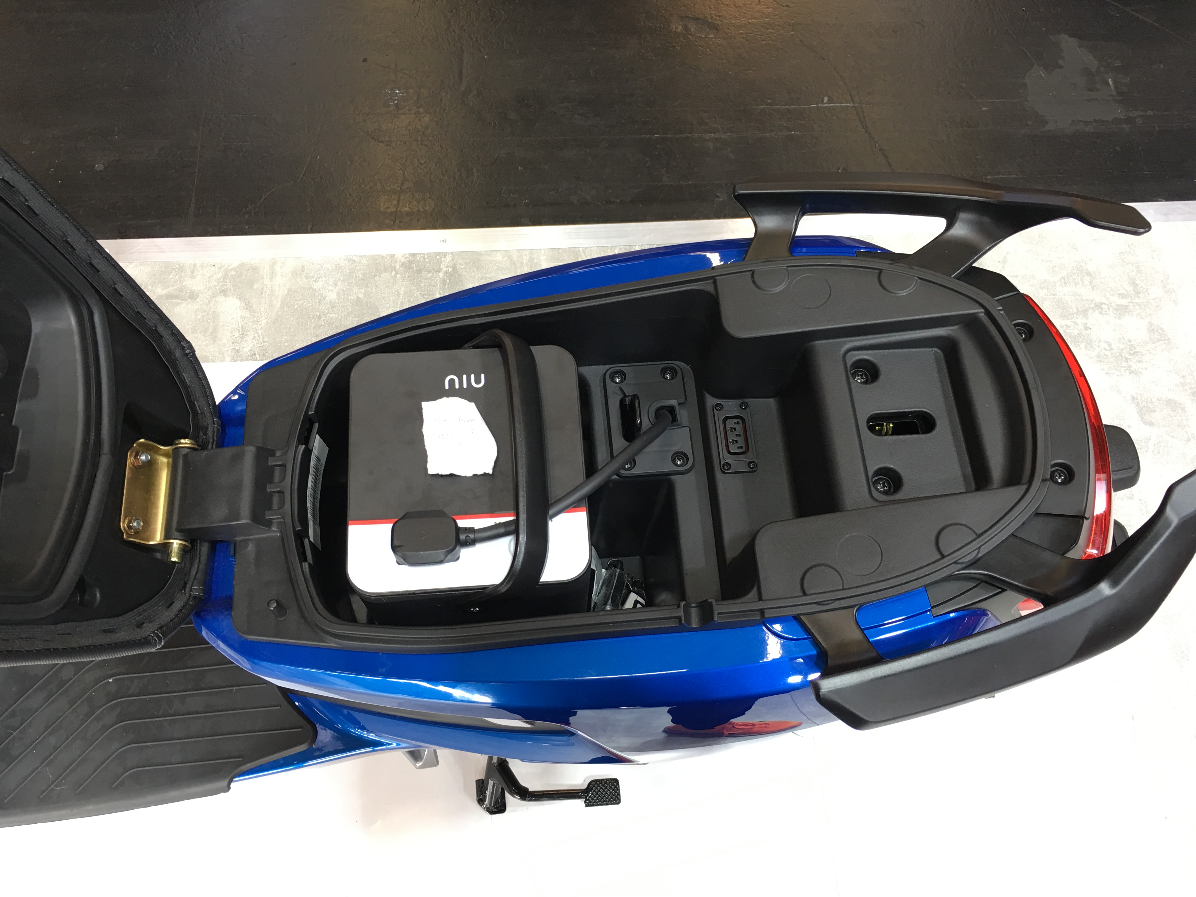 Also es sieht nach immer unter der Sitzbank laden aus. Aber an der Seite gibt es einen kleinen Kabeldurchlass...also Sitzbank zumachen geht dabei trotzdem.