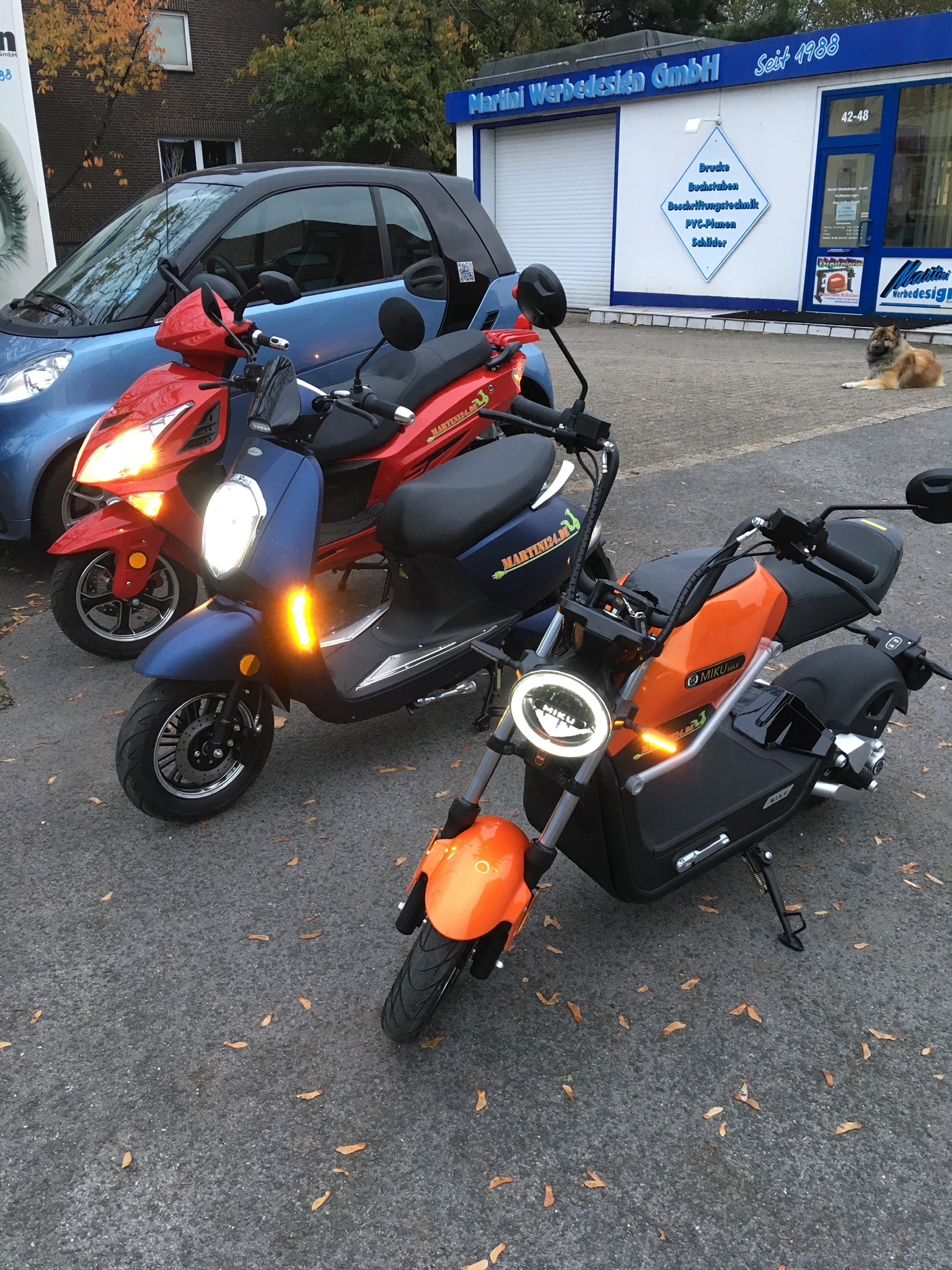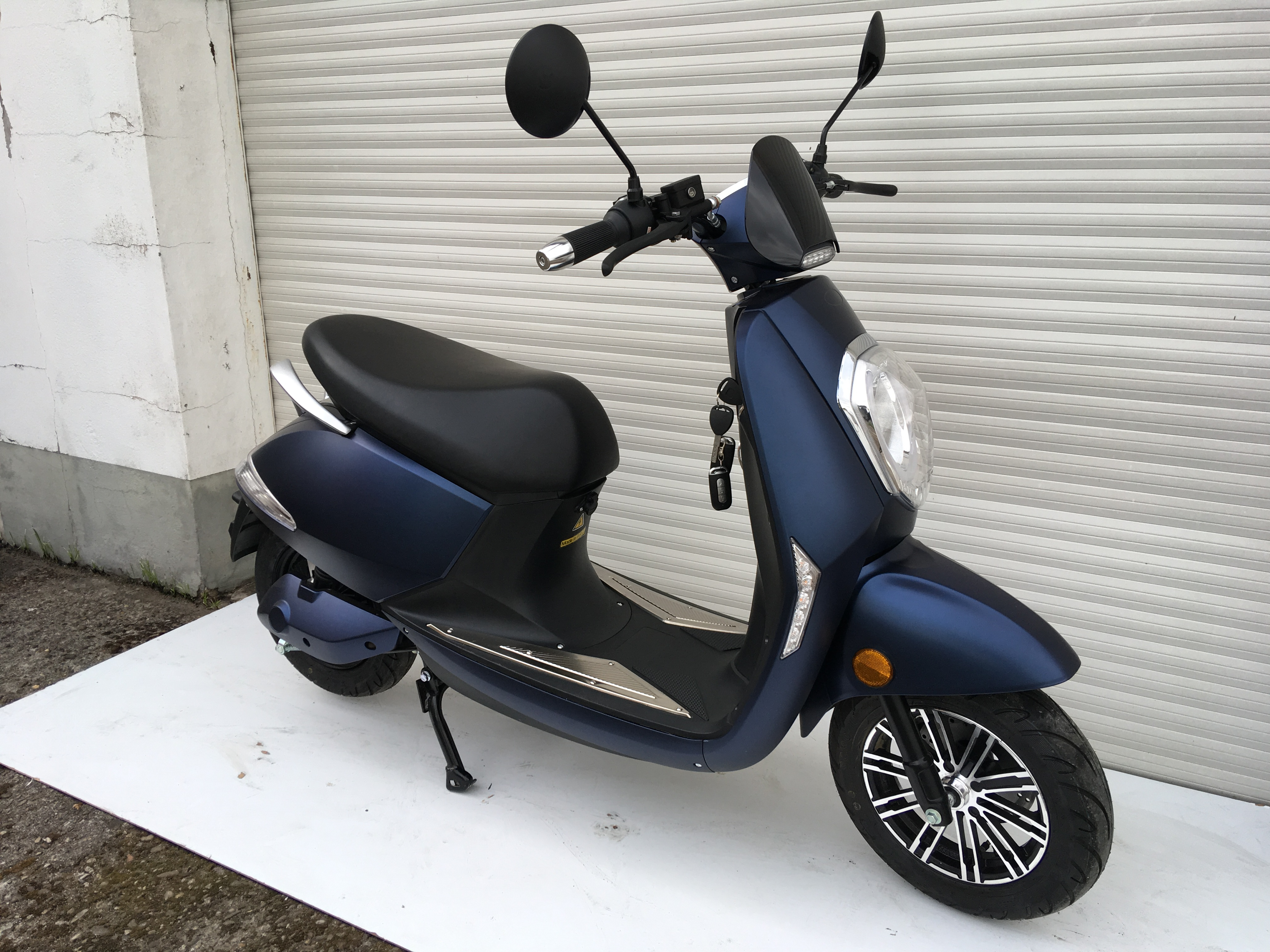 Na das ist doch mal ein sehr schönes edles Blau. Ein Satz Chromspiegel würde dem Rollerchen gut stehen. Genauso, wie der 2. Akku, mit welchem die kleine wilde Gina dann aber 2700 Euro kostet ...