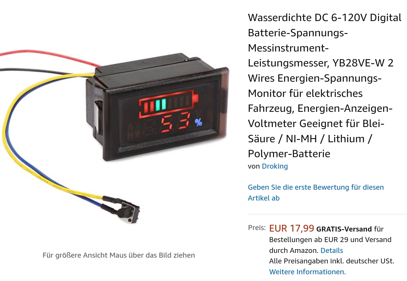 Da das YB28VE-W selbst über sich aussagt, mit nur zwei Kabeln an Batterie Minus und Plus angeschlossen zu werden, ist klar, dass es sich um eine rein batteriespannungsbasierte Anzeige handelt. Sie kann keinen Batteriestrom messen. Daran gemessen klingt der großspurige Produkttitel in der Beschreibung (Stichwort "Leistungsmesser") natürlich höchst unglaubwürdig. Korrekt wird es erst ganz unten bei der Paket-Inhaltsbeschreibung: "1x Digital Batterie-Spannungs-Prüfvorrichtung".