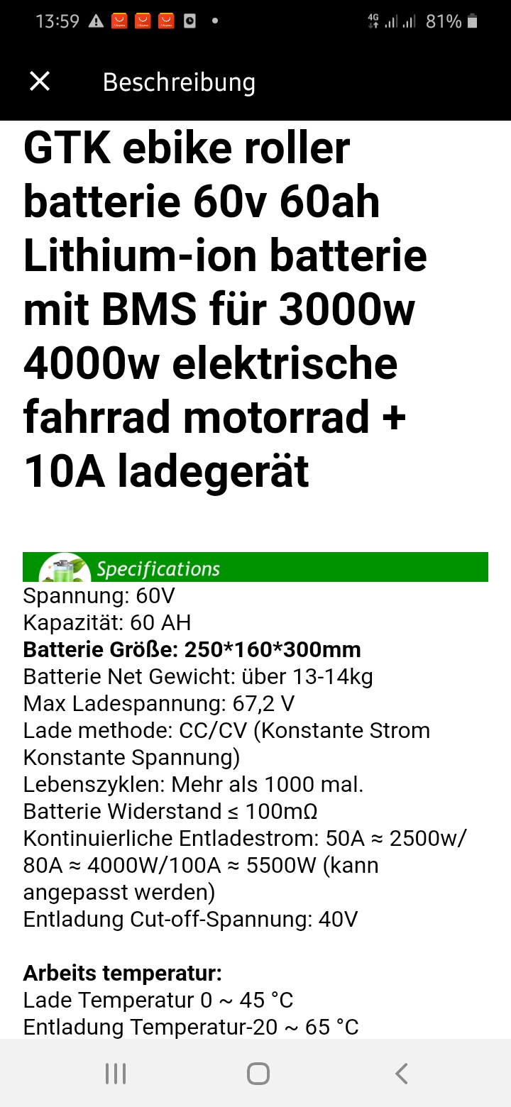 Ich finde auch keine Angabe wie viele Zellen seriell verschaltet sind, auch keine über Art oder Hersteller der Zeilen. Viele Nachbau Akkus aus China scheinen nur 16s x 10p Verschaltung zu haben. Vielleicht könnte man das aber auch absprechen also vor Ort customizen lassen, oder nachträglich ändern..