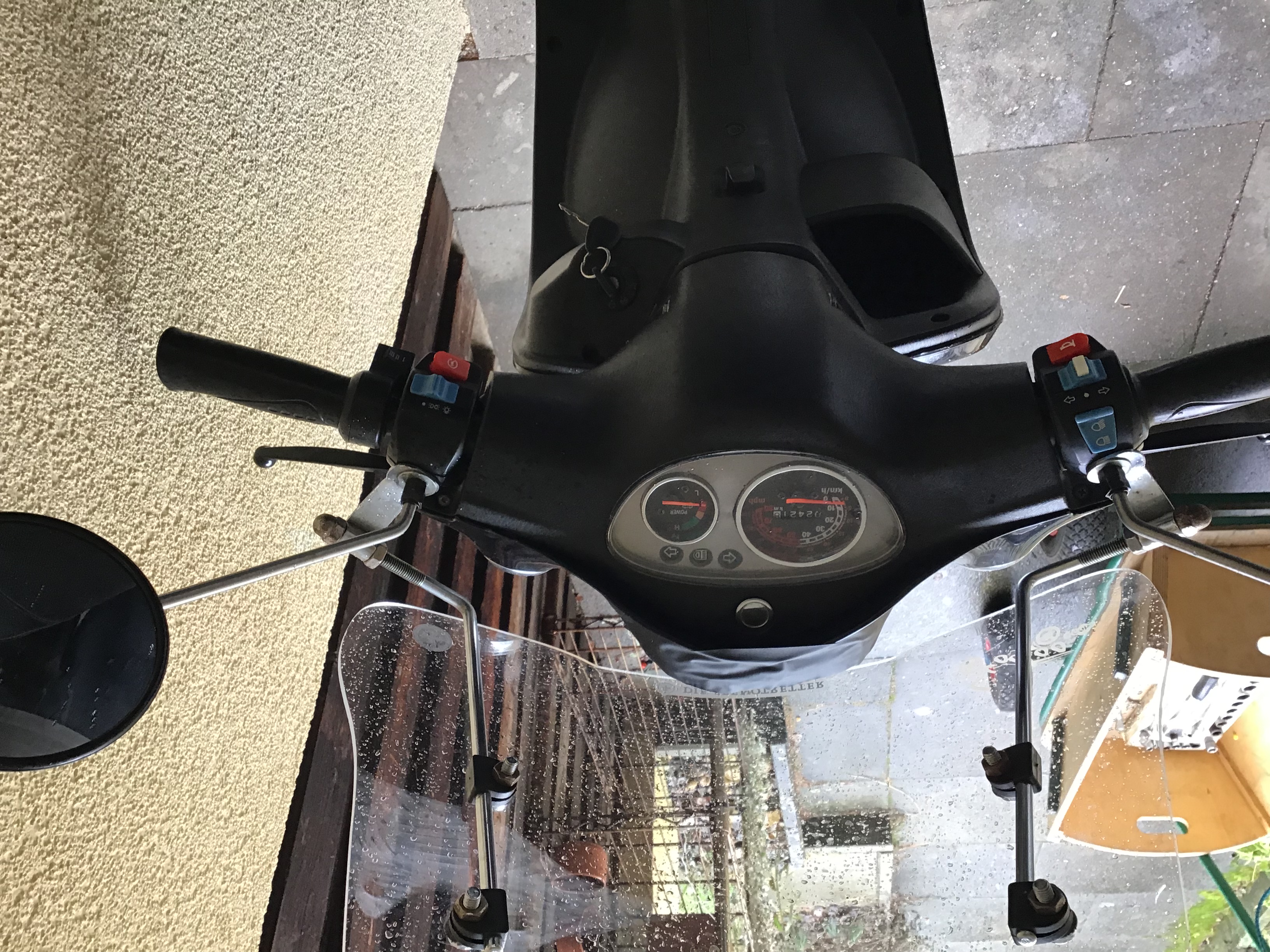 In der vorderen Verkleidung des Lenkers fehlen die beiden unteren Schrauben, das war bestimmt ein mächtiges Geklapper.