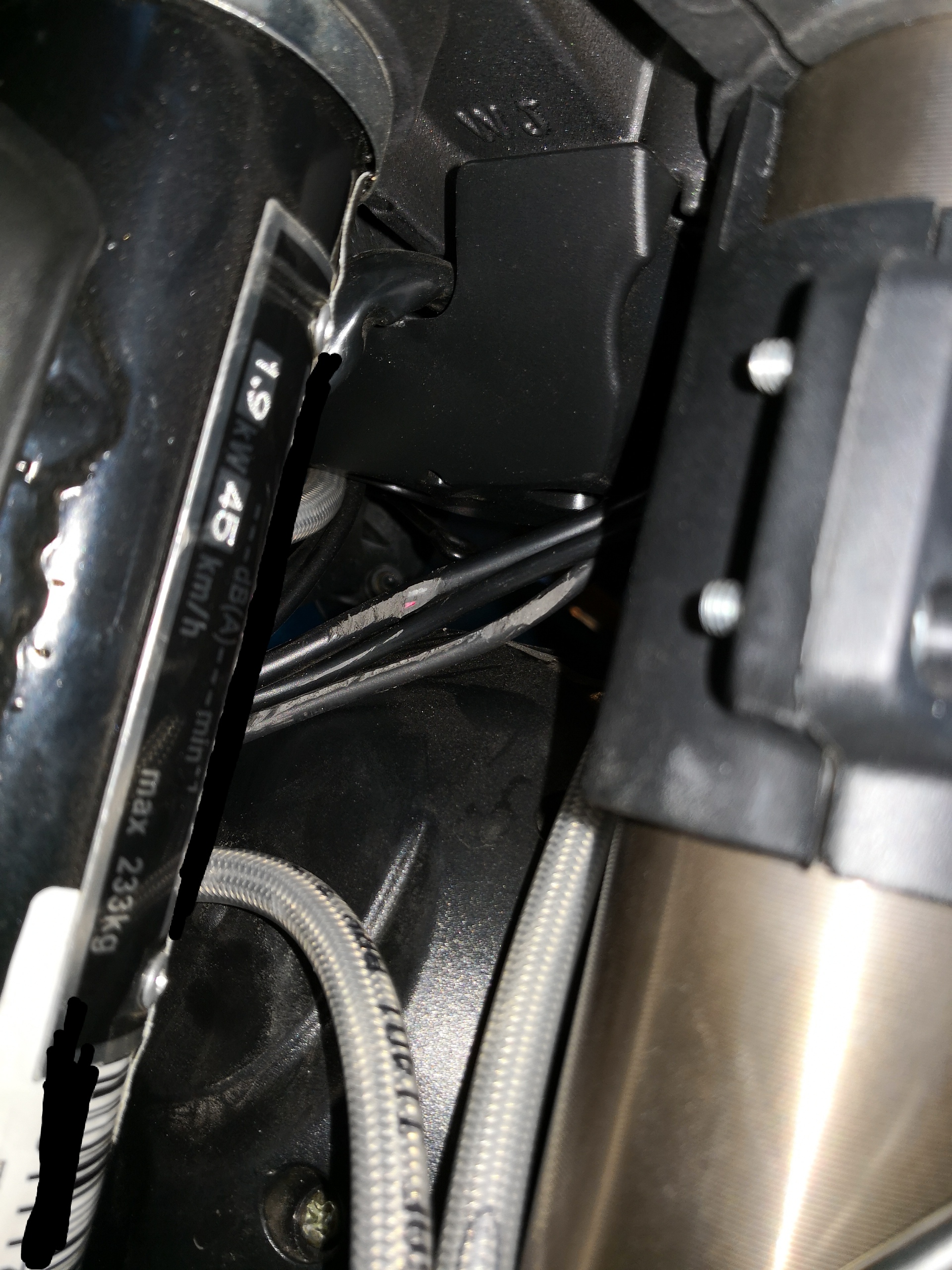 Danke für den Hinweis! Ich habe bei mir mal nachgesehen und die Kabel schleifen auch an dem Typenkennzeichen (450 km gelaufen). Würde es nicht mehr bringen, die Kante von dem Typenschild mit etwas weichen überzukleben? Ein Kabelschutzband würde sich doch erneut wieder an der Kante abschleifen. Auf dem ersten Bild sieht man auch, dass der Kabelstrang im Schlauch, der oben durch die Plastikmulde führt, an der Kante der Mulde schleift.