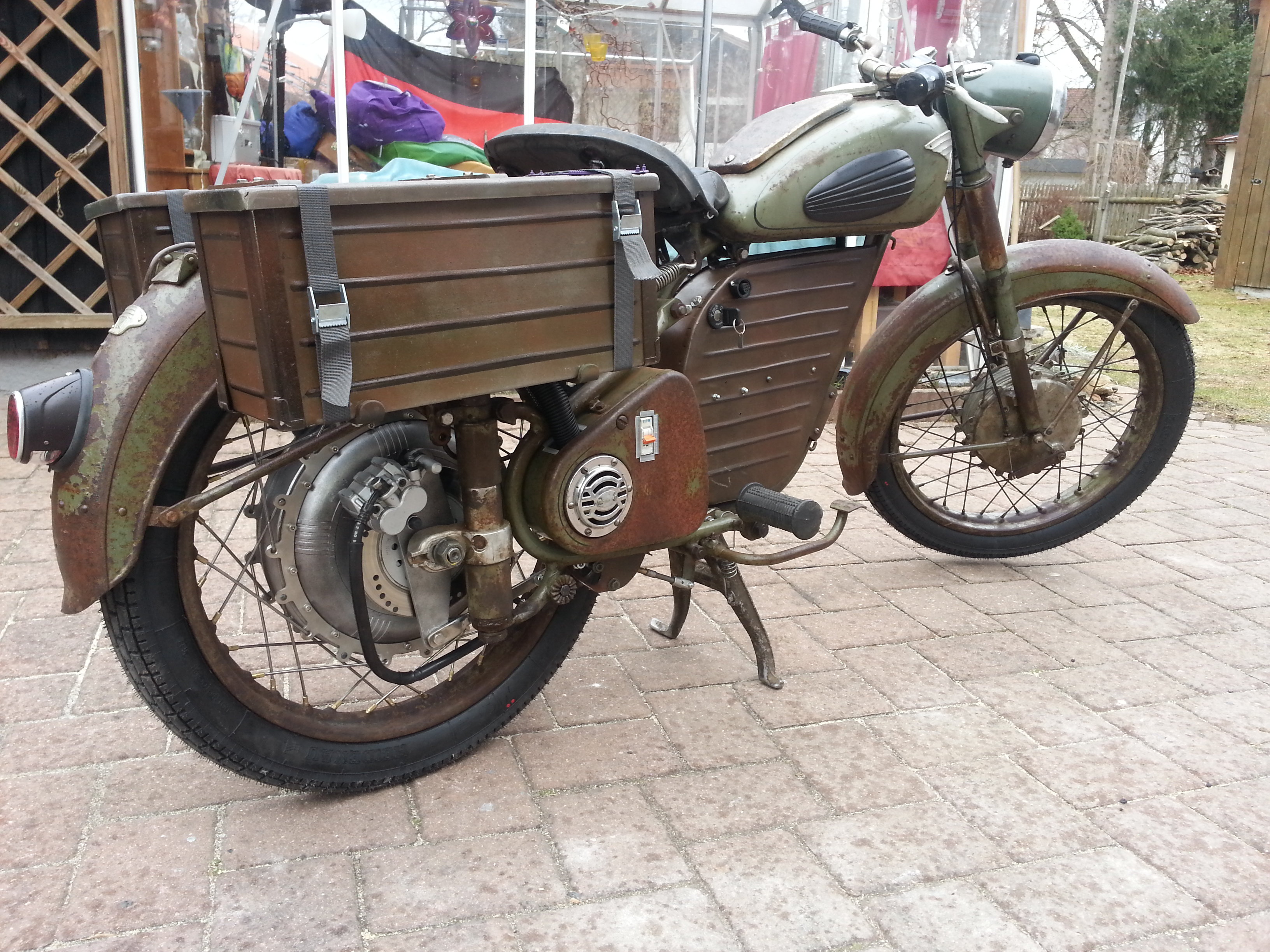 Aus einem vorhandenen Ardie BD175 Fahrwerk (ohne Motor usw.) und einem Kreidler Galactica 2.0 Unfall-Roller habe ich mir eine Elektroardie zusammengebaut.