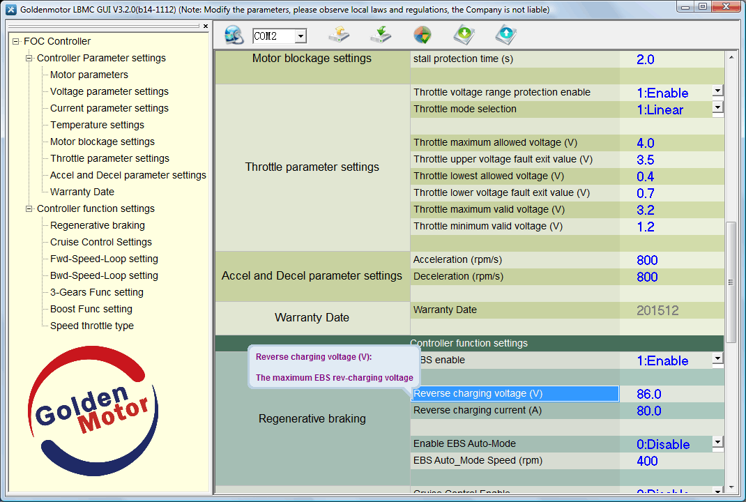 Zusätzlich gibt es auch noch die Betriebsgrenze, über der der Controller gänzlich abschaltet, genannt "High voltage protection value":