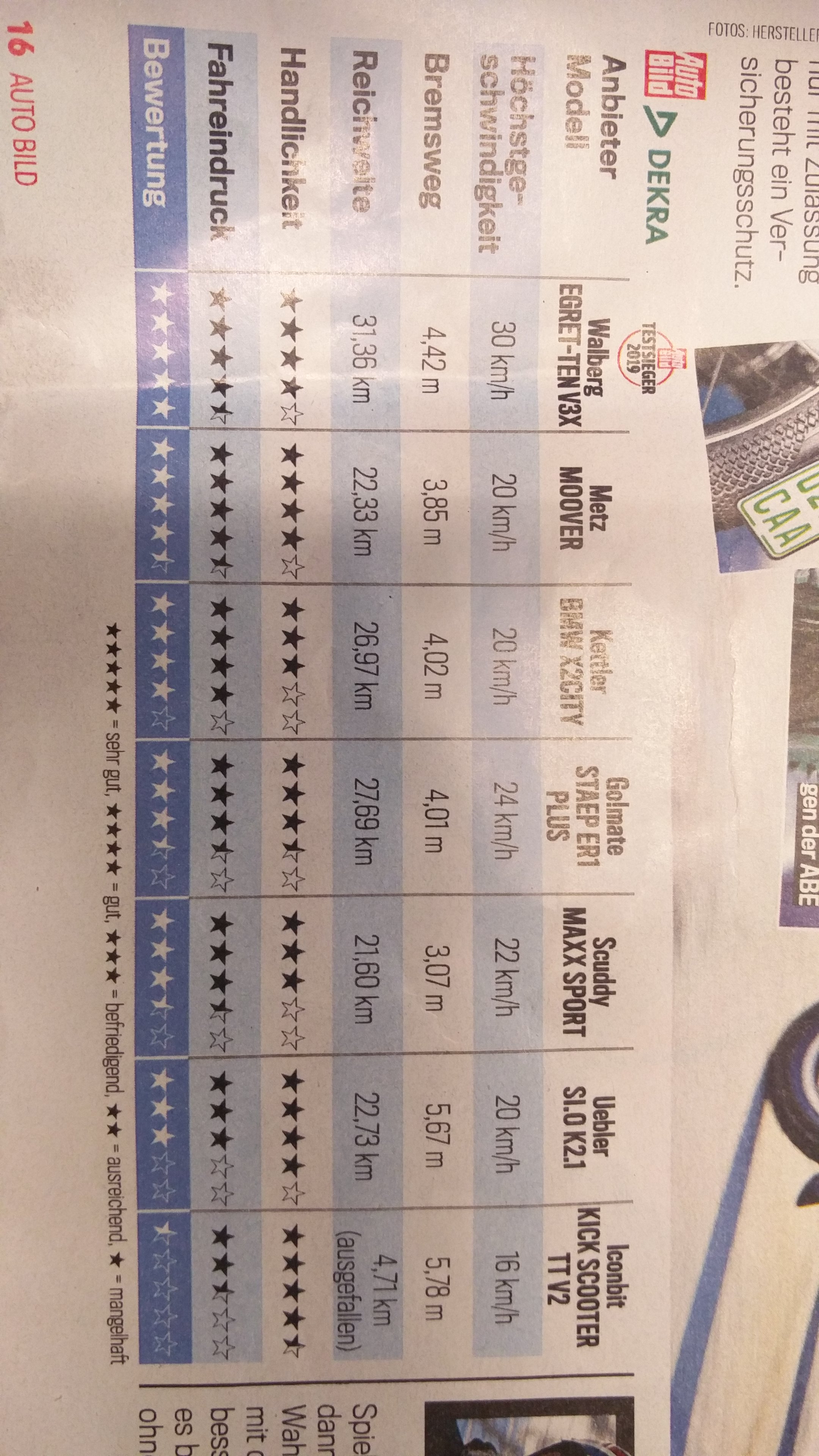 Hier der Rest, laut deren Test ab 1400 brauchbar, da kann ich auch gleich nen normalen Roller fahren oder E-BIKE.