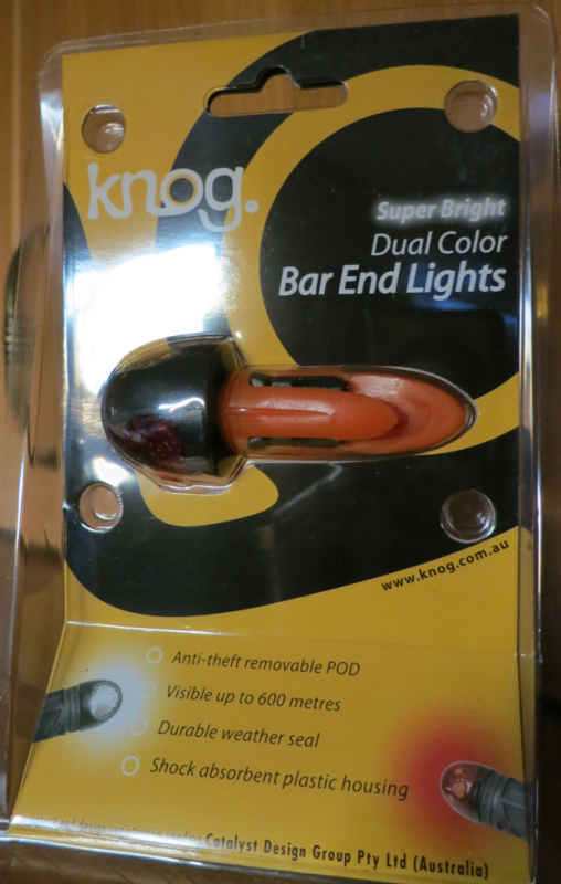 Fahrrad-Blinker geleistet. Für die Montage brauchte ich nur an den Enden die Lenkergriffe mit einem Teppichmesser auf Innenrohrdurchmesser aufschneiden und die Blinker hinein drücken.