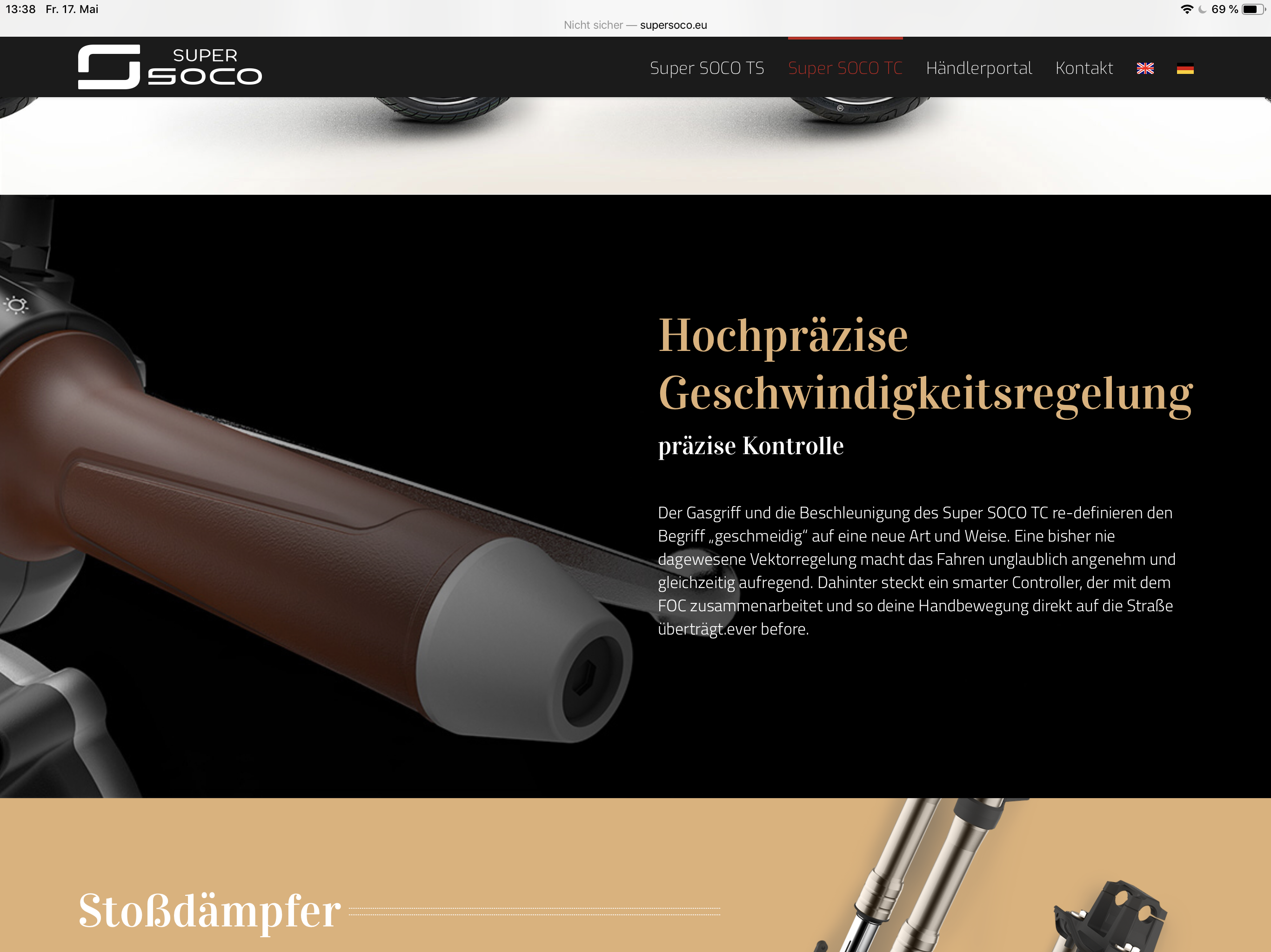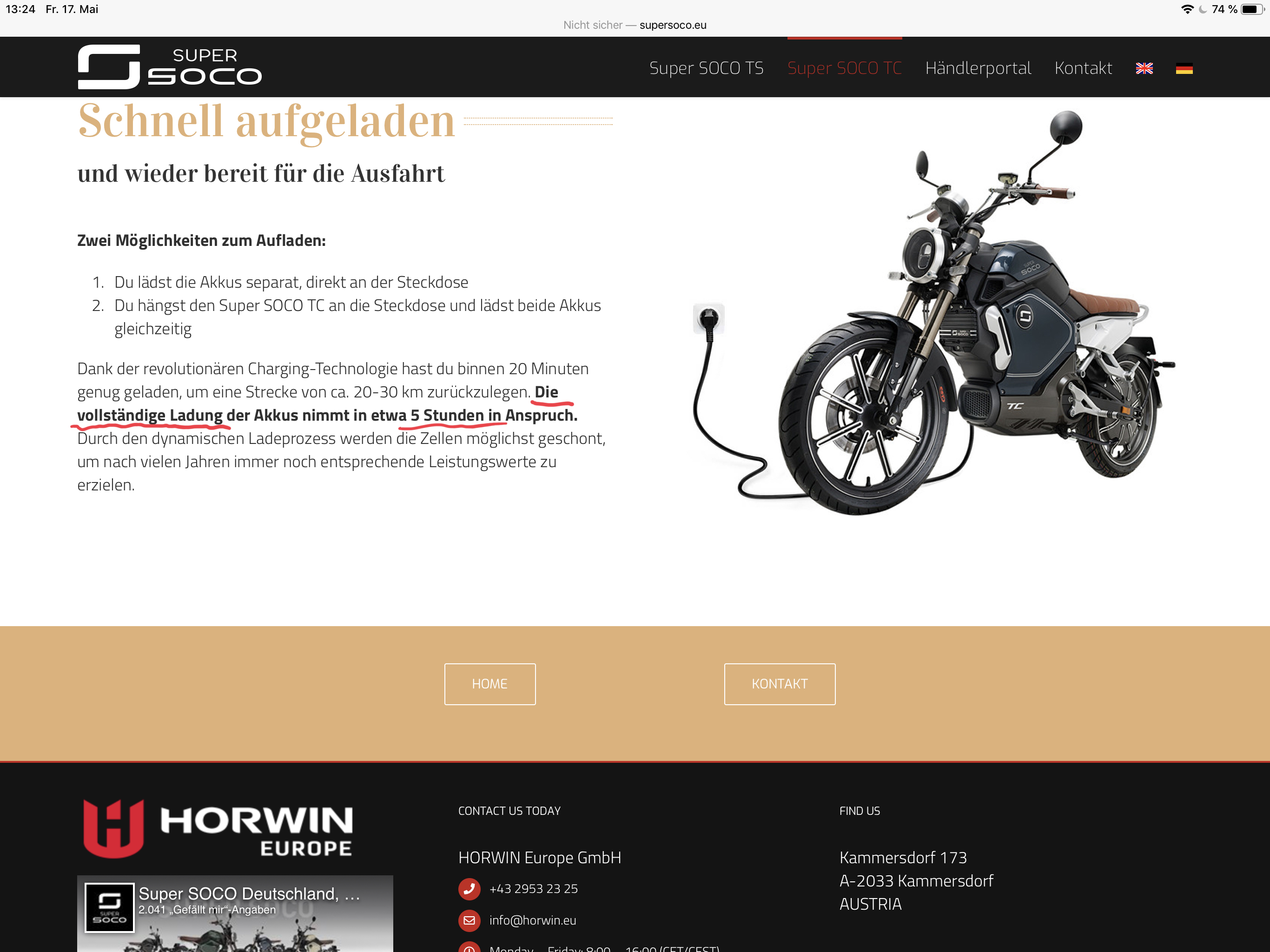 - Roller: Super Soco TC 2018 (BT4.0 fehlt, VR-Felge ()() )