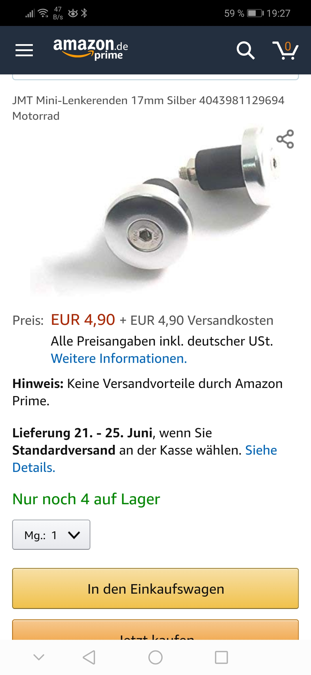 Keine Angst du kannst die einfach abziehen... Naja einfach ist ein wenig untertrieben, aber es geht schon. Der Lenker ist ein 17mm Stahllenker. Die "Metallfeder" hält die Kappe fest und verklebt ist da nichts. Ich musste nur den Gummi noch ein wenig bearbeiten und die Schraube anziehen... Fertig. Ich bin echt zufrieden. Anbei die Bezugsquelle...wefunkster hat geschrieben: ↑Mo 17. Jun 2019, 17:37OK, sehr geil!