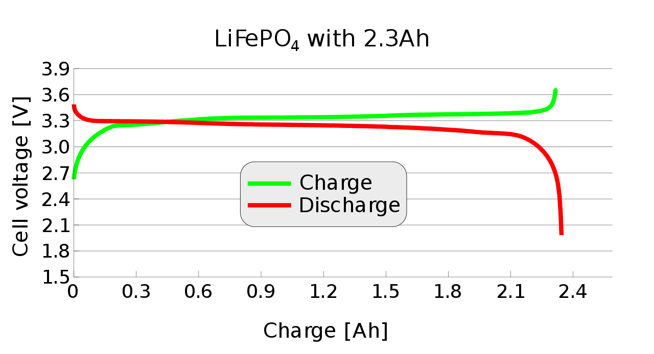 Ich habe mir einmal eine LiFePo4 Lade-/Entladekurve angeschaut: