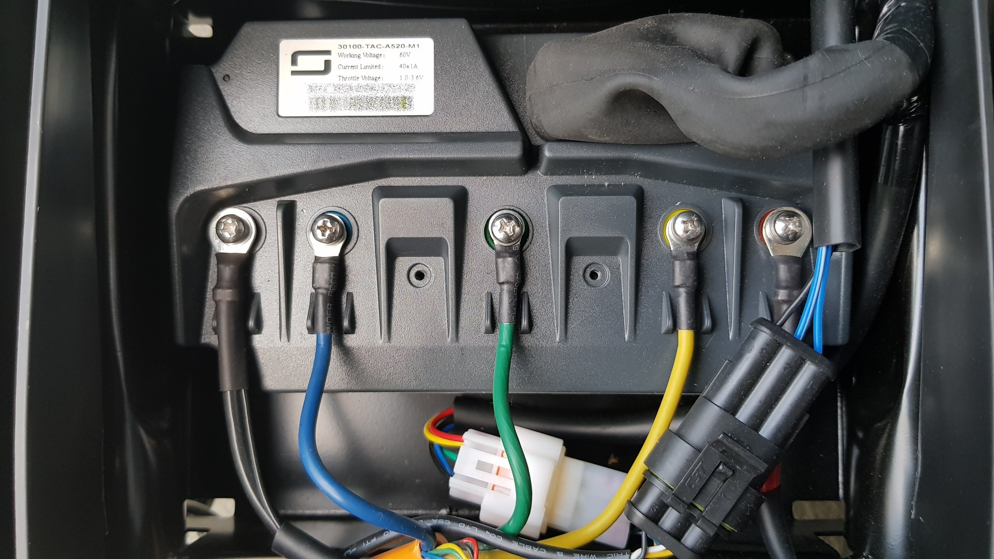 Blau-grün-gelb gehen wie ein Rudel Steuerleitungen zum Motor.