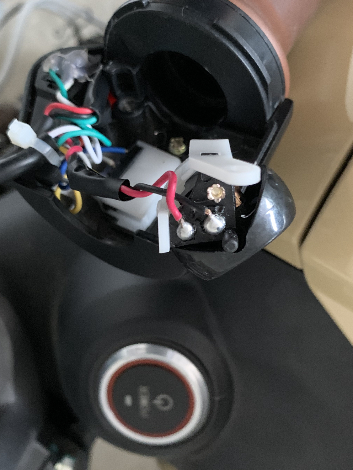 2. Du mußt den Schalter ausbauen, dazu die zwei Schrauben auf der weißen Plastikklemme lösen.