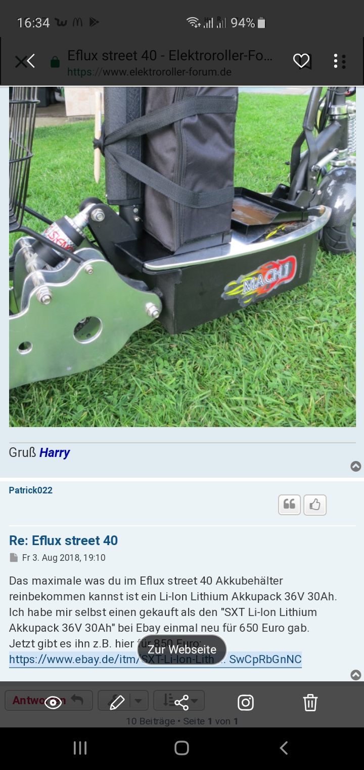Ich habe mir einen eflux 40 gebraucht gekauft. Hab ihn heut getestet um Nachts RP rum zu fahren. Naja die Akkuleistung hat nicht gereicht.