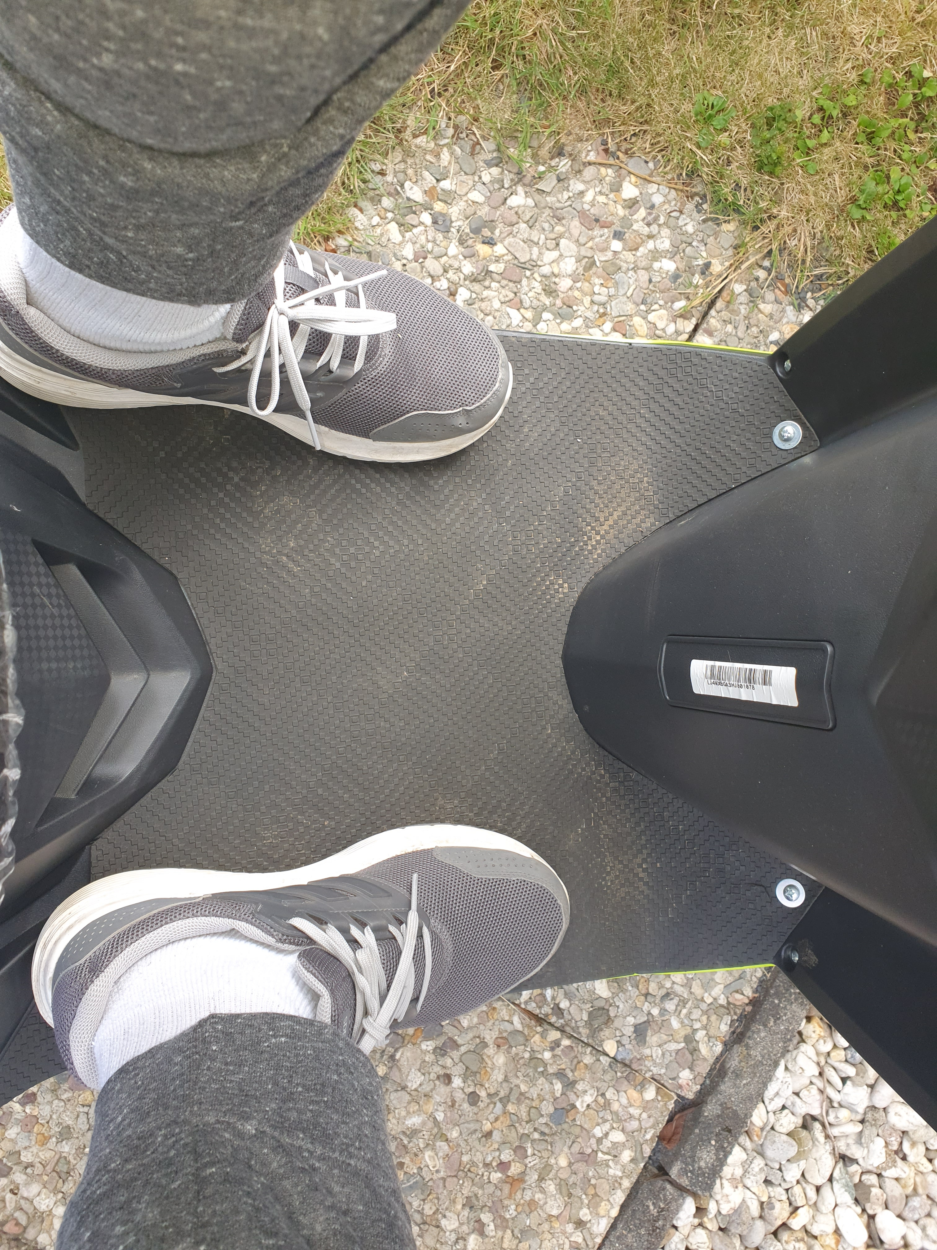 Also bei mir passen die Füße ganz gut drauf und ich habe ausreichend Platz mit Schuhgröße 45.