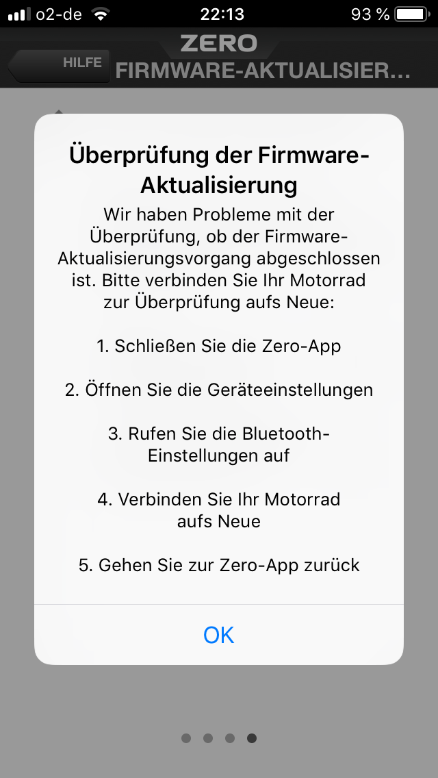 Tja, nach dem Update beim Händler gab es Montag Abend diese Woche schon wieder die gefürchtete Meldung auf der Zero-App: Es steht ein Update bereit! Doch diesmal ging es beim Weiter klicken auch bei mir WIRKLICH weiter :D