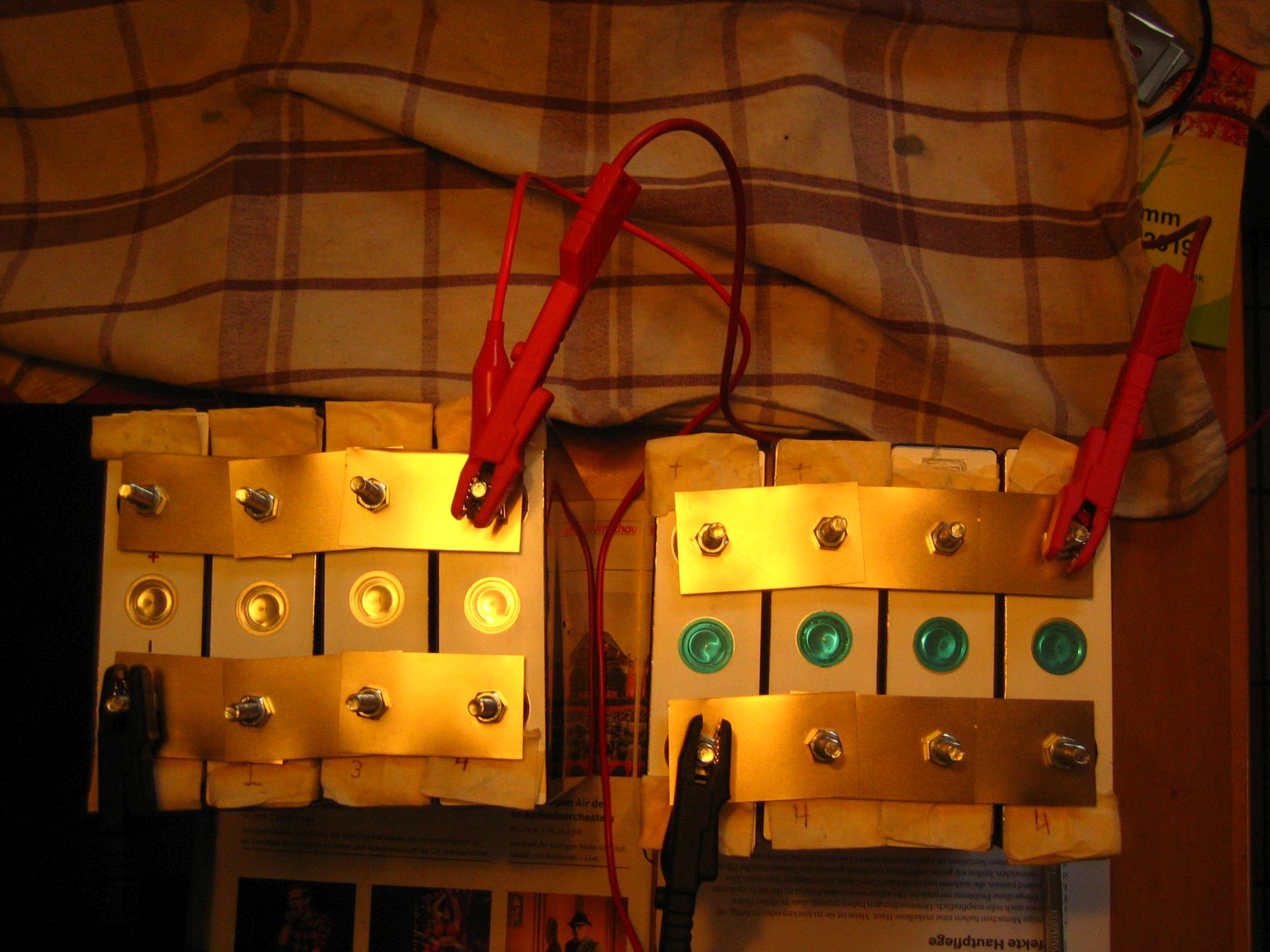 Bestellt man weitere acht 100Ah GTK LiFePo4 Zellen, kann es sein, dass man 4 Stück mit blauen Überdruckventildeckeln und 4 mit silbernen bekommt. Ende des Monats wird mein 120er also über gut 72V und 100Ah verfügen. 24*3,2V*100Ah= 7,7kWh.