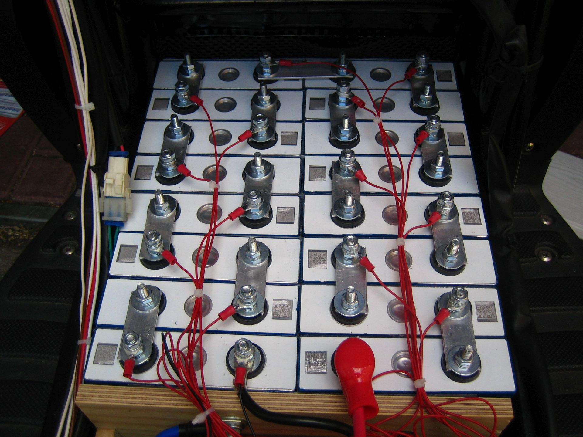 Bestellt man weitere acht 100Ah GTK LiFePo4 Zellen, kann es sein, dass man 4 Stück mit blauen Überdruckventildeckeln und 4 mit silbernen bekommt. Ende des Monats wird mein 120er also über gut 72V und 100Ah verfügen. 24*3,2V*100Ah= 7,7kWh.