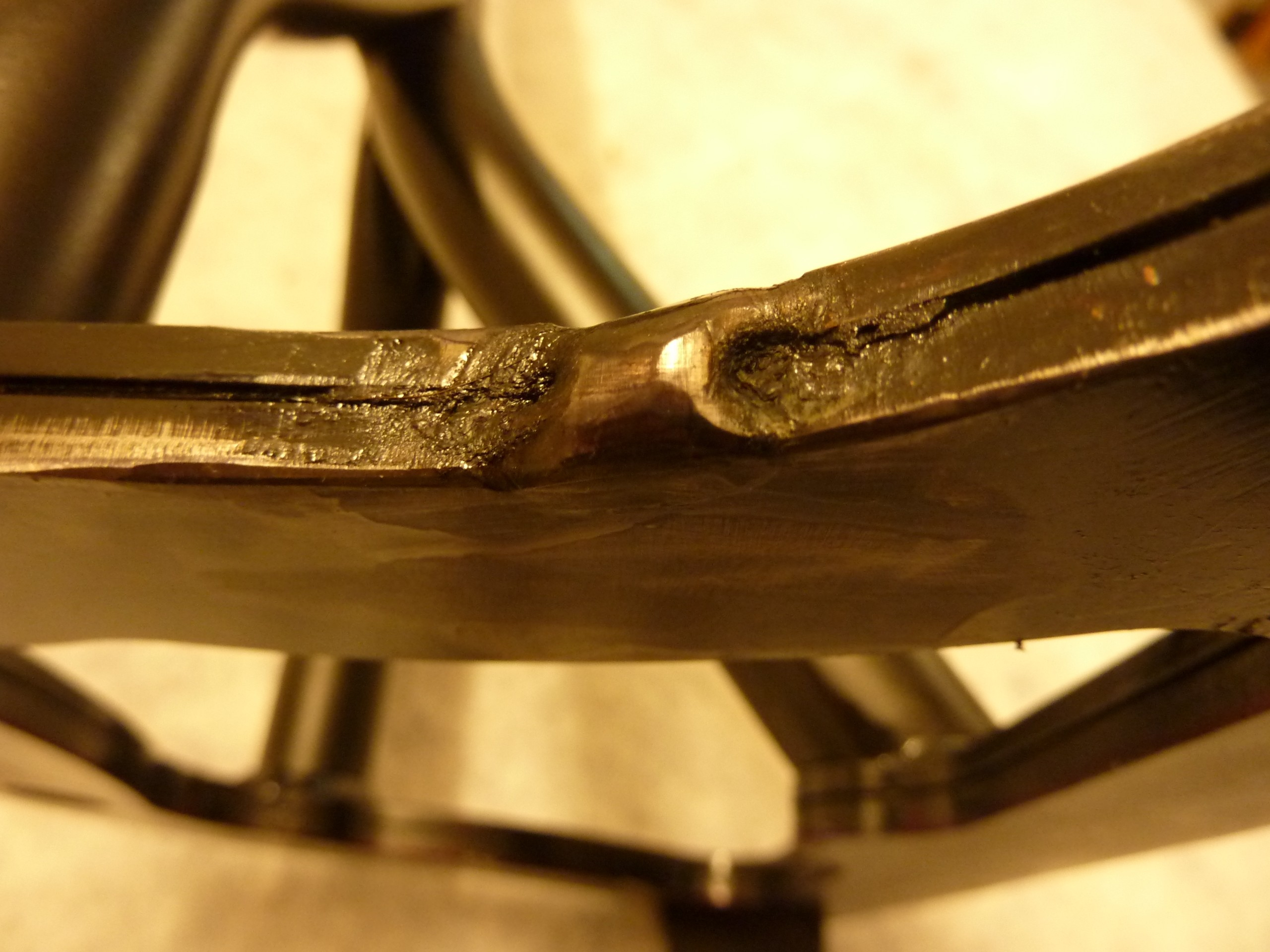 Im Winter stand mein Revo zeitweise im Gartenschuppen. Natürlich ohne Akku! Eines Nachts war Frost. Als ich am nächsten Tag den Gepäckträger montieren wollte, fand ich den Fuß des 3-Bein-Grundgestells in zwei Teilen verschoben vor.