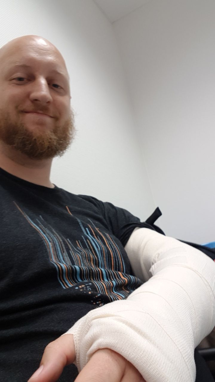 Unfall und musste sie Abschleppen lassen da mein Arm gebrochen ist..