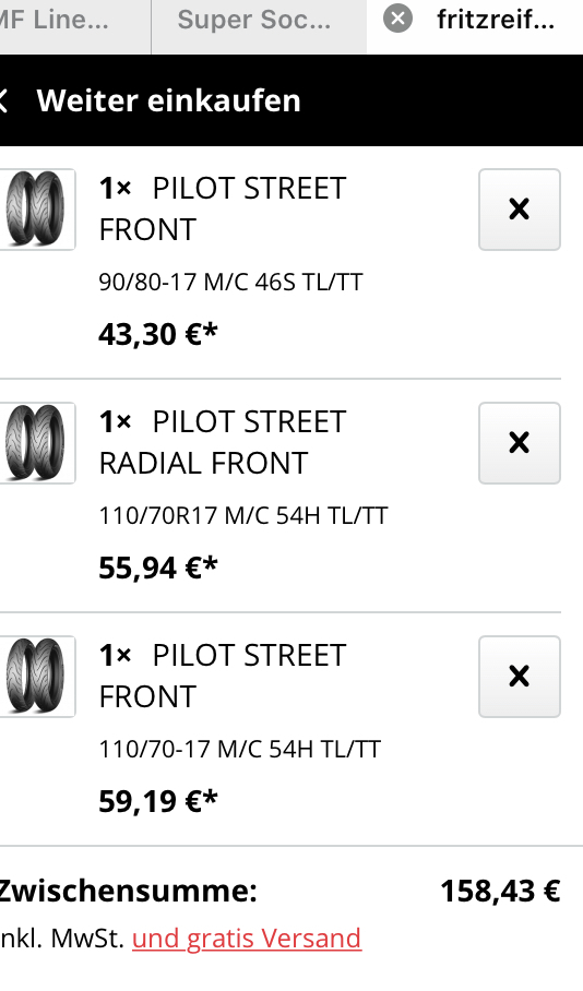 Alternative wäre bei fritzreifen.de zu bestellen, hier gibt es noch den 110/70 als radial - soll man jetzt den lieber nehmen oder den normalen?