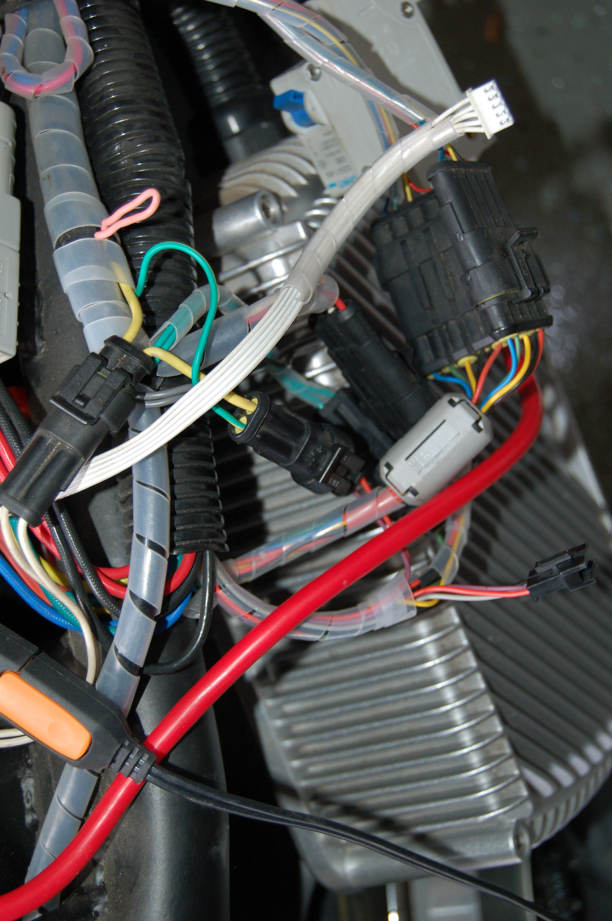 Die zwei dünnen 5er Kabel Controller zu Motor blau, gelb, grün rot schwarz sind die zu den Motor-Hallsensoren. Wohl auch ein 6 Phasen-Antrieb. Die Doppelkabel mit Gelb/Grün sind Power cut off, ggf. auch vom Motor(Temp-sensor) und Controller.