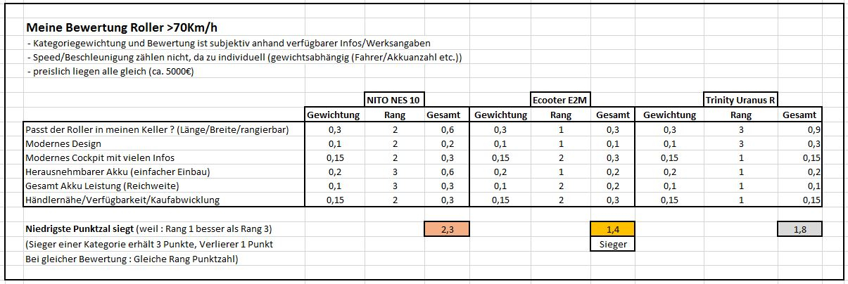ich habe nun viel gelesen und anhand meiner subjektiven Schwerpunkte in den Anforderungen eine Entscheidungsmatrix erstellt.