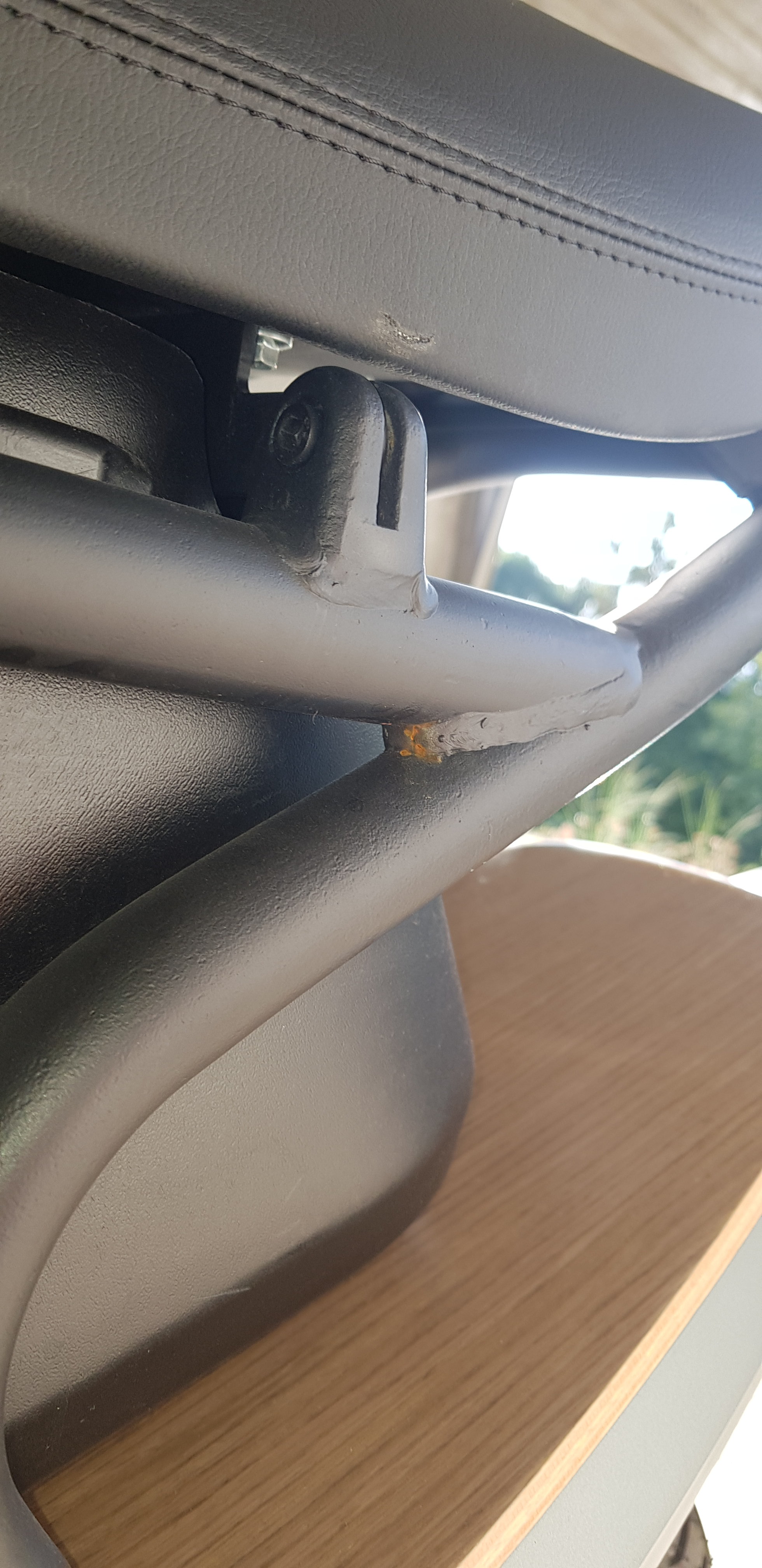 Es scheint hauptsächlich die Schrauben zu betreffen, welche nicht wirklich korrosionsfest sind, die Schweissnaht am Rahmen ist wohl ein Fehler bei der Beschichtung.