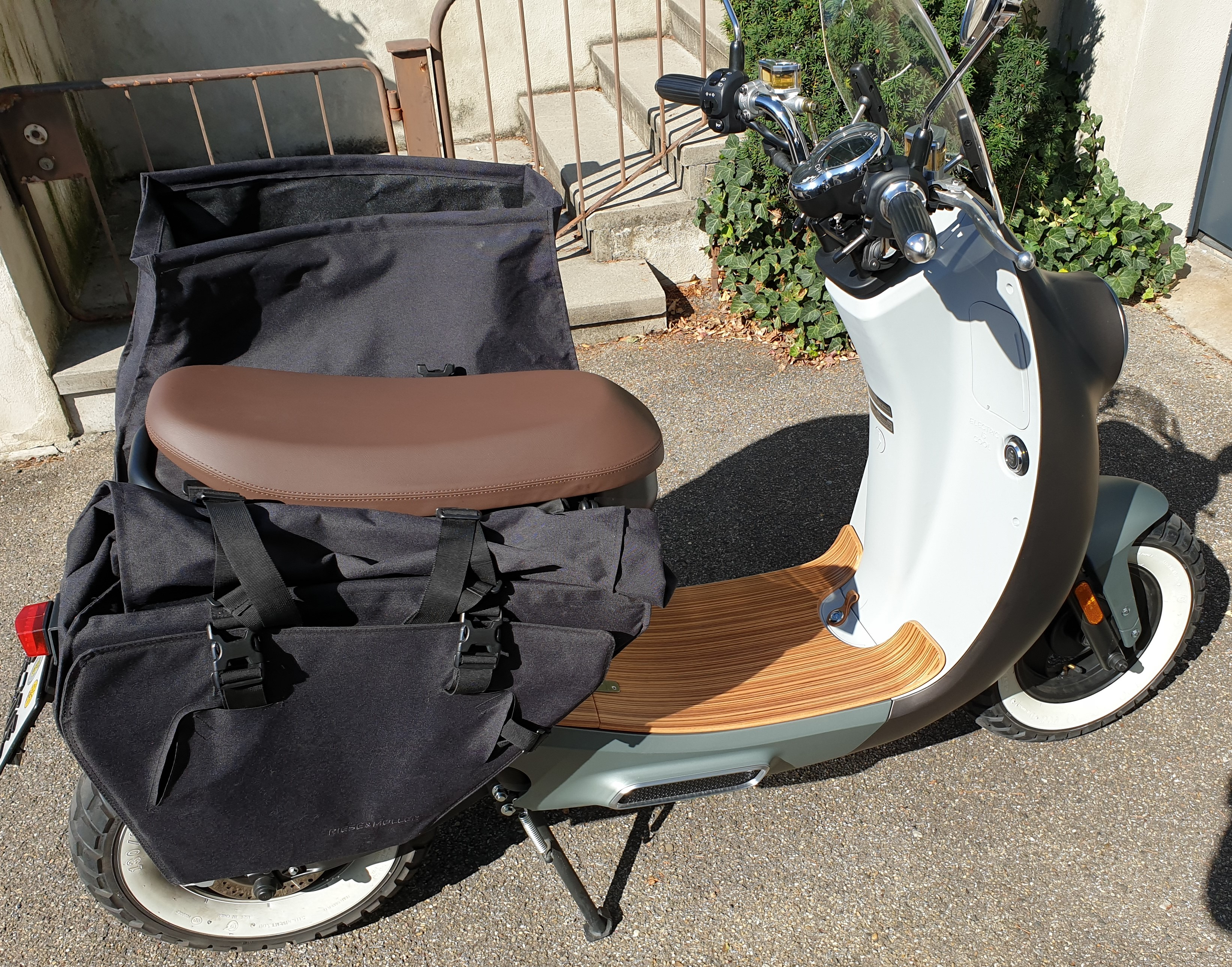 Die Box unter dem Boden gibt es noch dazu und auch ein Topcase könnte noch montiert werden. Mehr Stauraum bei einem Roller wird nur schwer zu finden sein und der NES hat auch noch genügend Power um das Ganze locker zu stemmen.